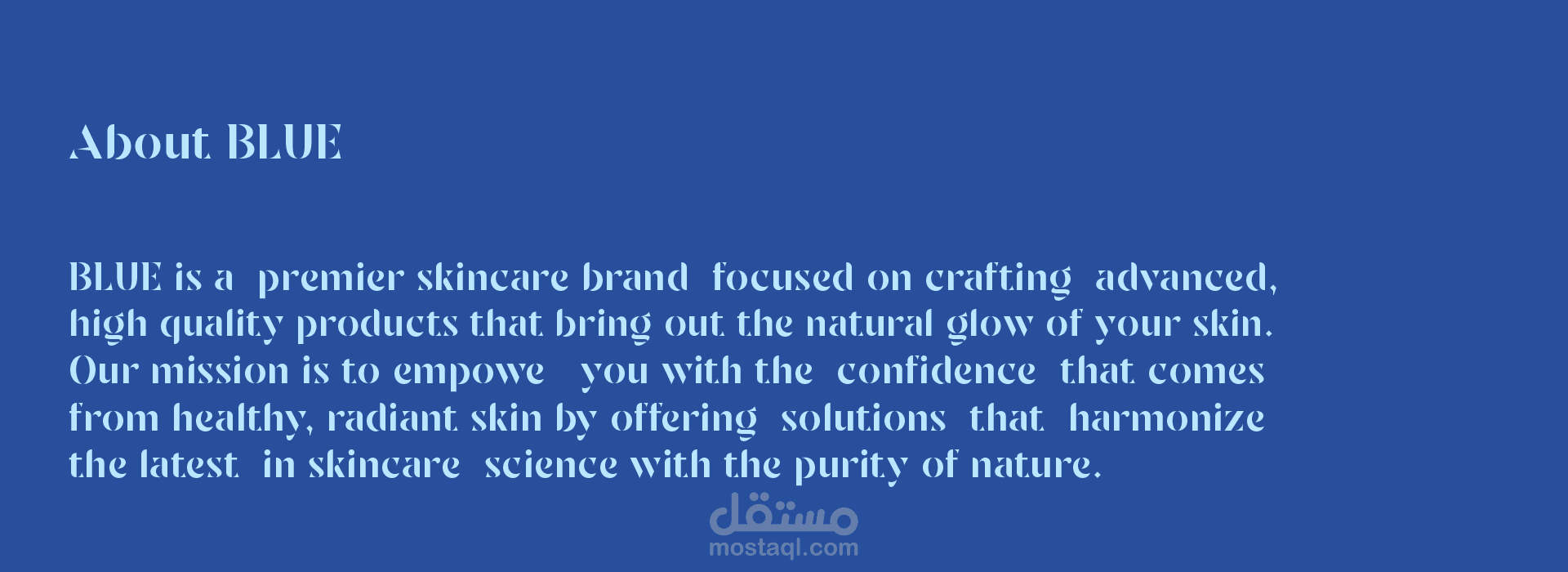 بدءًا من تصميم الشعار الأنيق وحتى لوحة الألوان الهادئة والصور الانسيابية، تم تصميم كل عنصر ليعكس التزام BLUE بالجودة والرفاهية. أردنا التأكد من أن العناصر المرئية للعلامة التجارية لا تبرز فحسب، بل تنشئ أيضًا اتصالاً عاطفيًا مع جمهورها.