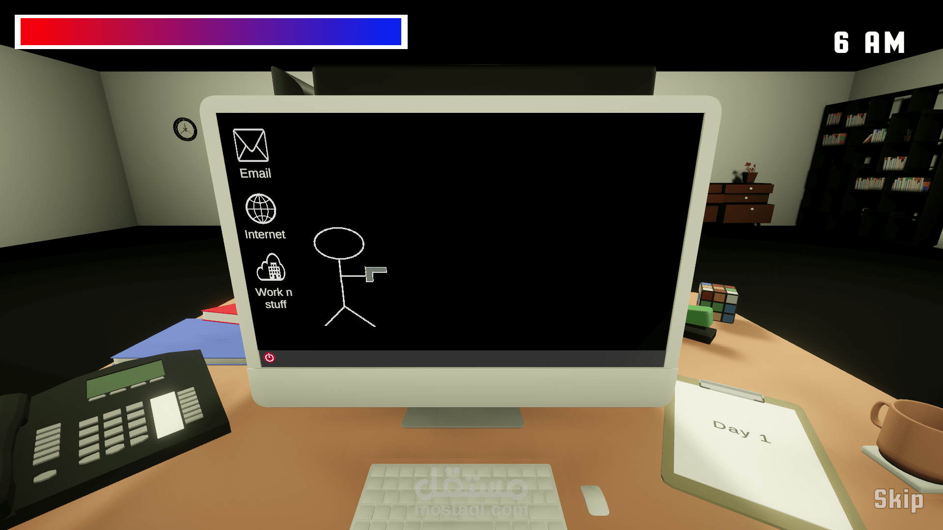 هذا العمل عن التكاسل في العمل, Den هو الشخصية الرئيسية و الذي يحاول ان يقوم بتصفح الانترنت بدون ان يتم اكتشافه من مديره او من العمال الاخرين.
