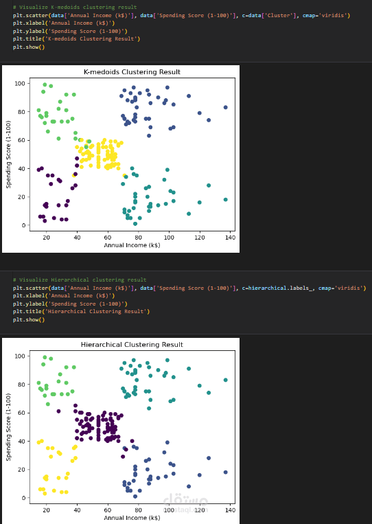 تحليل الداتا و عمل mining لداتا وتطبيق( Hierarchical Clusterin),(K-medoids Clustering)لمعرفه احسن الجورزم للداتا وتحليلها في افضل شكل واستخراج جميع الملومات بدقه ومعرفه تاثير الدخل علي لعمر ومعدل الانفاق