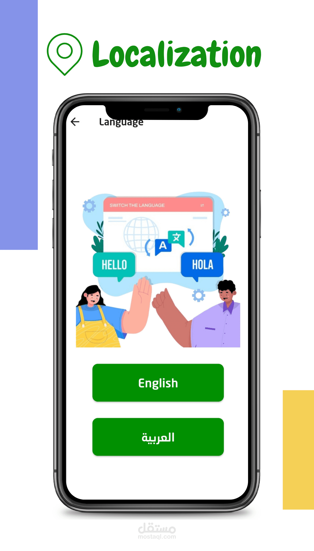 6- التطبيق متاح باللغتين العربية والإنجليزية وتقدر تغيرها بكل سهولة من الإعدادات