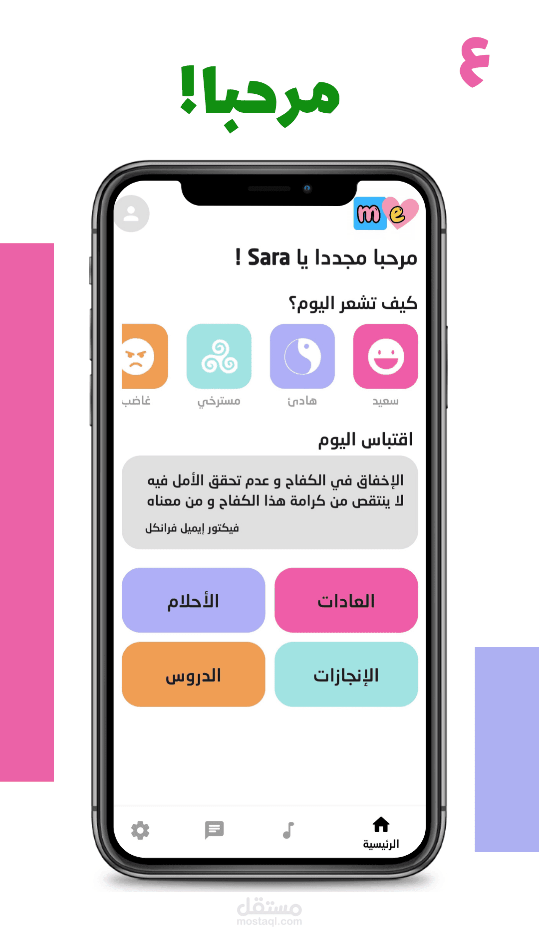 1- تقدر كل يوم تختار ال feeling بتاعك كان ايه وتكتب السبب والأسباب دي كلها هتكون موجودة في التطبيق ومتقسمة كل feeling وله الأسباب بتاعته