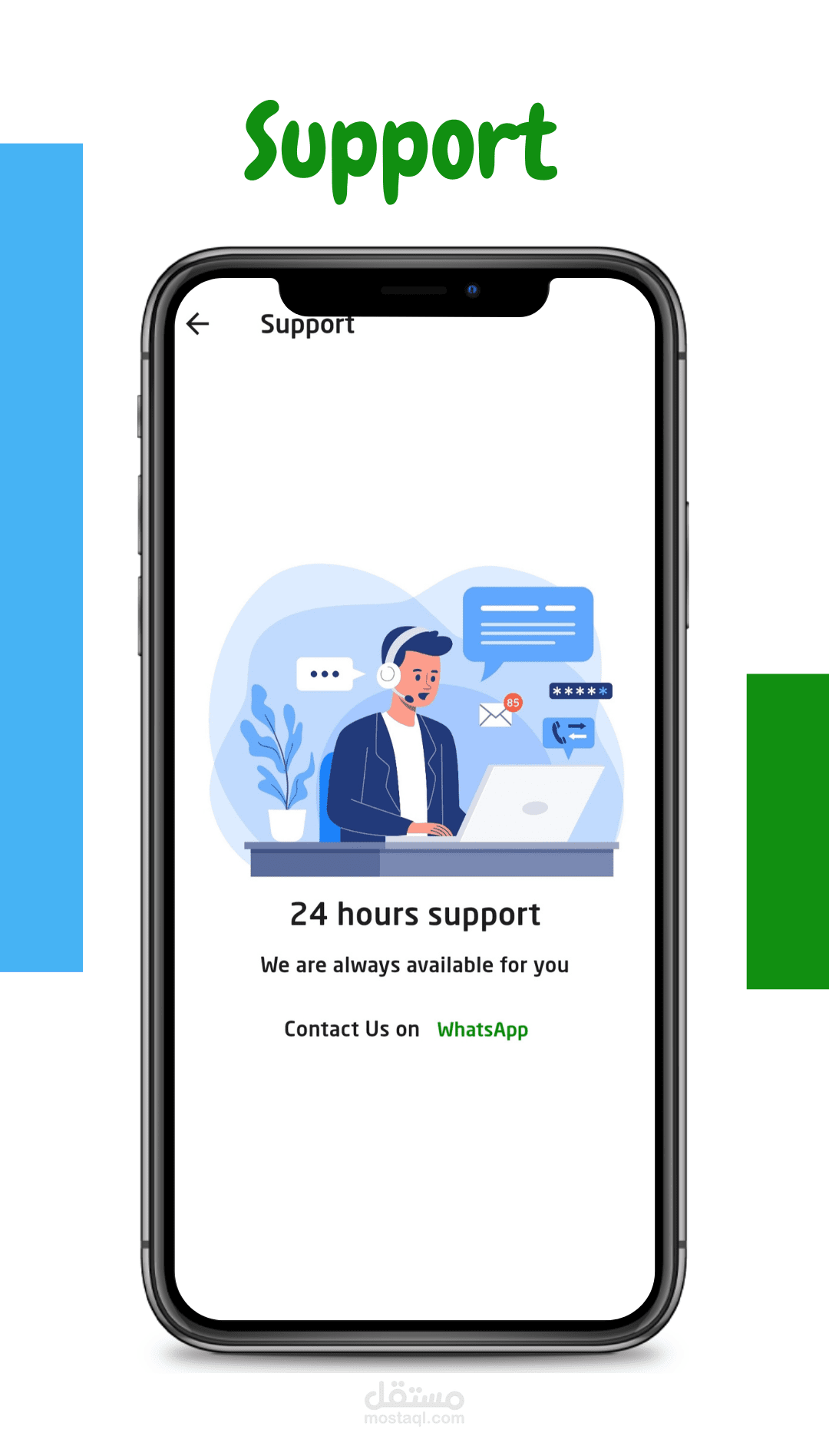 7- هتلاقي برده جزء الدعم وده في حالة لو بتواجه أي مشكلة في التطبيق أو عندك اقتراح لحاجة معينة تقدر ساعتها تتواصل مع الدعم وهما هيردوا في خلال 24 ساعة