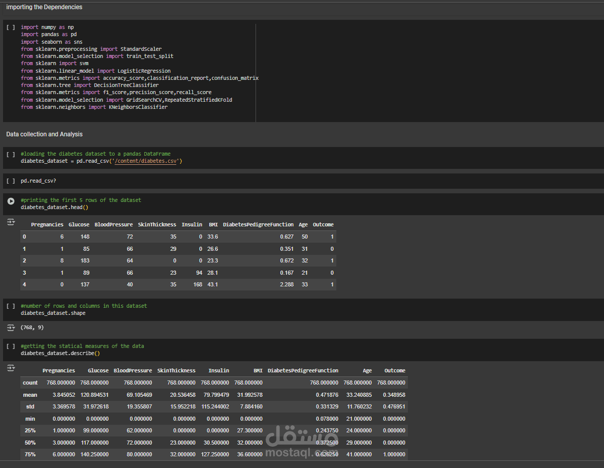 This project focuses on developing a machine learning model to predict the likelihood of diabetes based on various medical factors. The model analyzes health data patterns and provides predictions to aid early diagnosis and risk assessment.