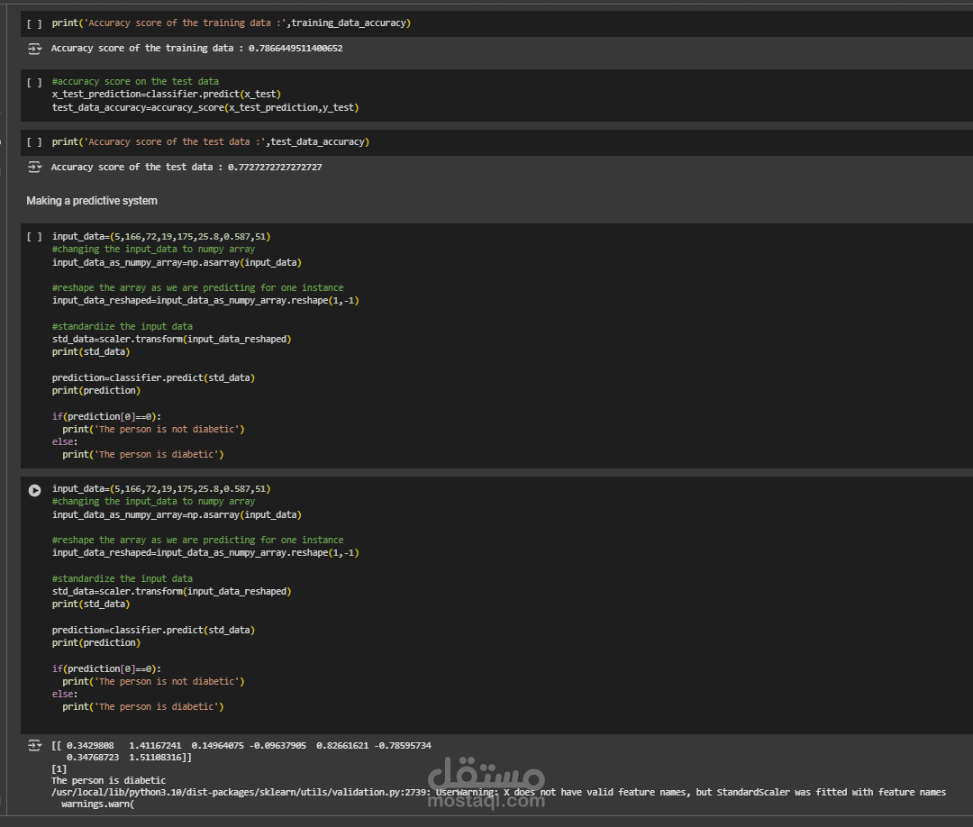 Developed a web-based interface using Flask or Streamlit to allow users to input their medical data and receive predictions.