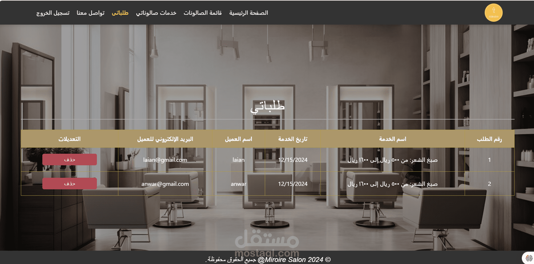 إدارة الخدمات المتوفرة في الصالون (مثل قص الشعر، التجميل، وغيرها).
