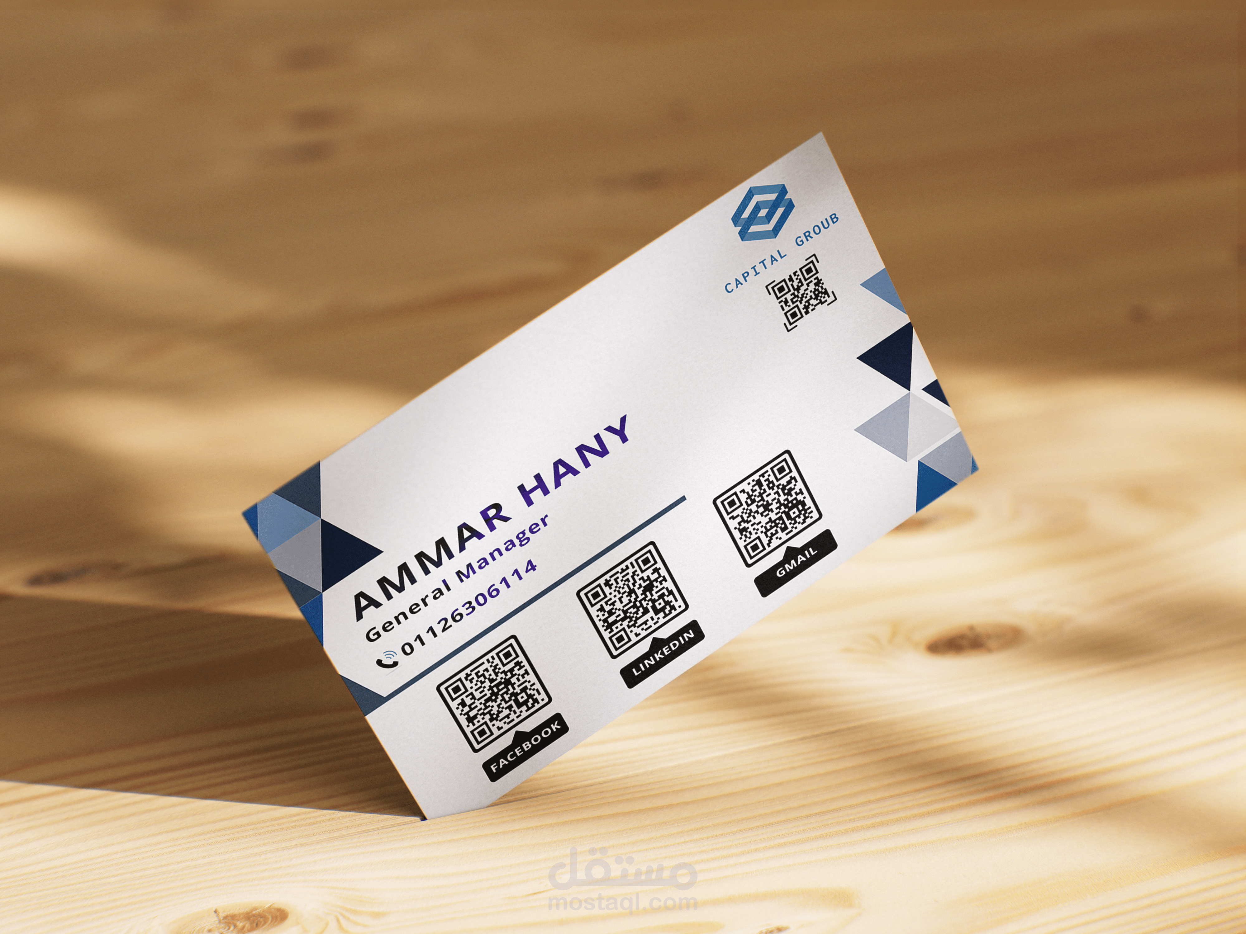 “كارت بيزنس بتصميم عصري أنيق—خلفية نظيفة باللون الخشبى . الشعار يتصدر الكارت بلمسة إبراز نقطية، بينما تظهر بيانات الاتصال بأسلوب مُنظَّم يسهّل قراءتها سريعاً. حواف قائمه تمنح إحساسًا ودودًا، مع ملمس ورقي فاخر يترك انطباعًا احترافياً يدوم.