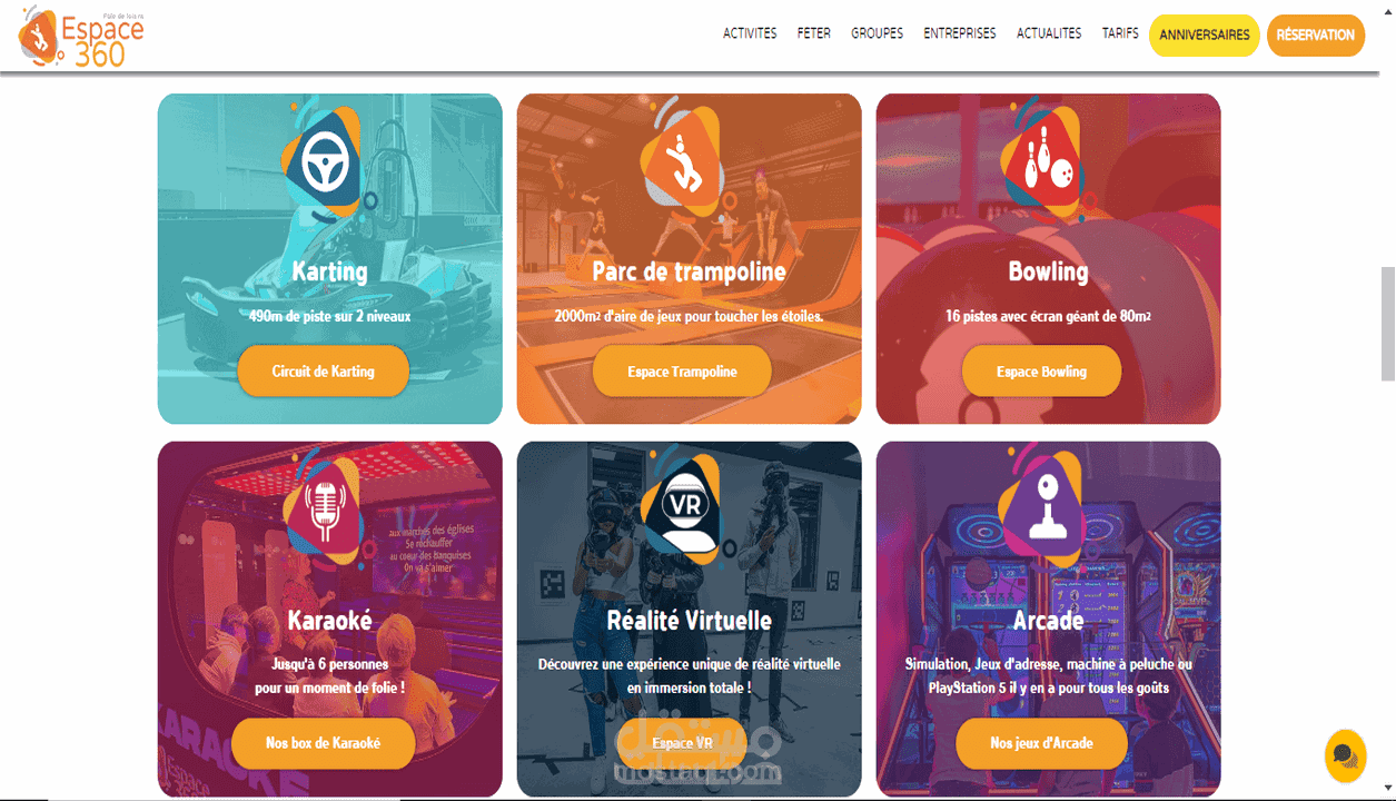 Espace 360" هو شبكة من حدائق الترفيه في فرنسا، تقدم مجموعة واسعة من الأنشطة الترفيهية المناسبة لجميع أفراد العائلة. تشمل الأنشطة المقدمة في هذه الحدائق القفز على الترامبولين، قيادة سيارات الكارتينغ، البولينغ، تجربة الواقع الافتراضي، ألعاب الأركيد، وغيرها الكثير.