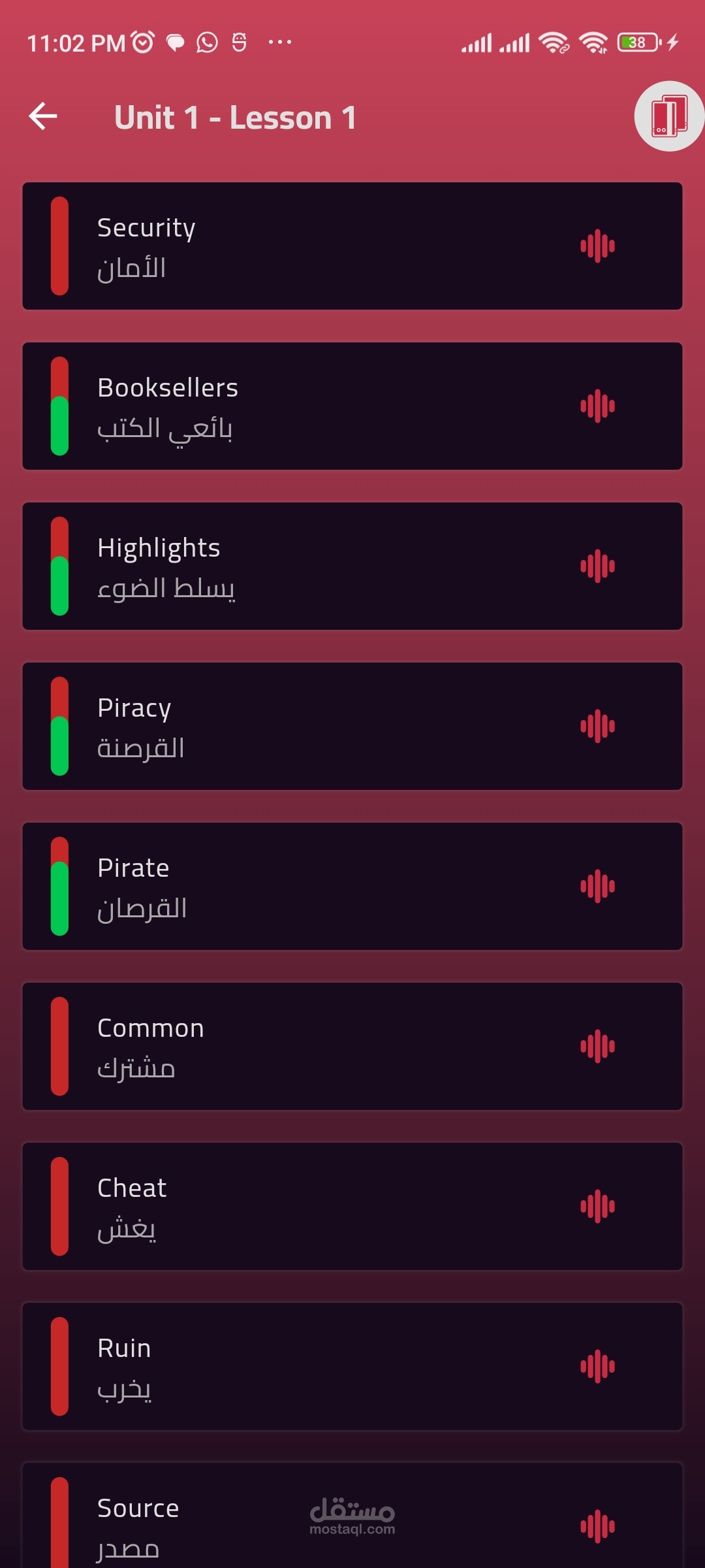 إضافة ميزات جديدة بناءً على احتياجات المستخدمين مثل تتبع تقدم الكلمات المحفوظة لكل درس.