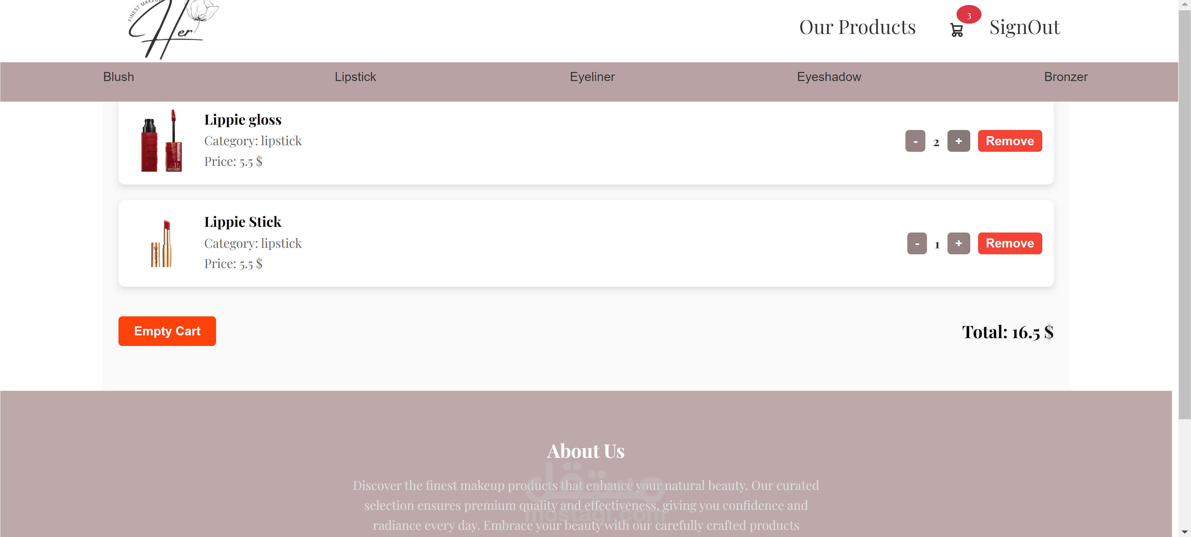 Shopping Cart: Manage items in your cart with options to add, remove, or adjust quantities.
