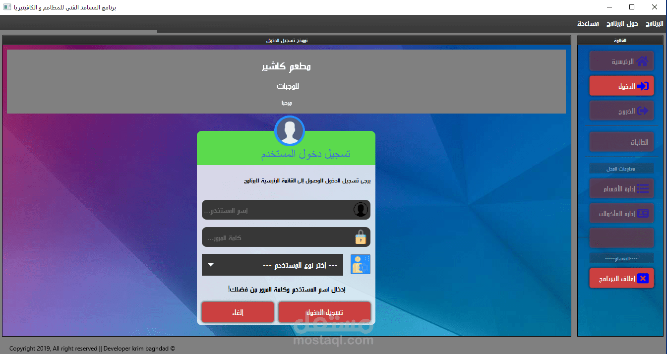 السلام عليكم أنا كريم بغداد من الجزائر .مبرمج جافا .لدي اكثر من 4 سنين خبرة في انشاء برامج سطح المكتب .و أستخدم تقنية JAVA FX في تصميم الواجهات الرسومية لبرامجي .