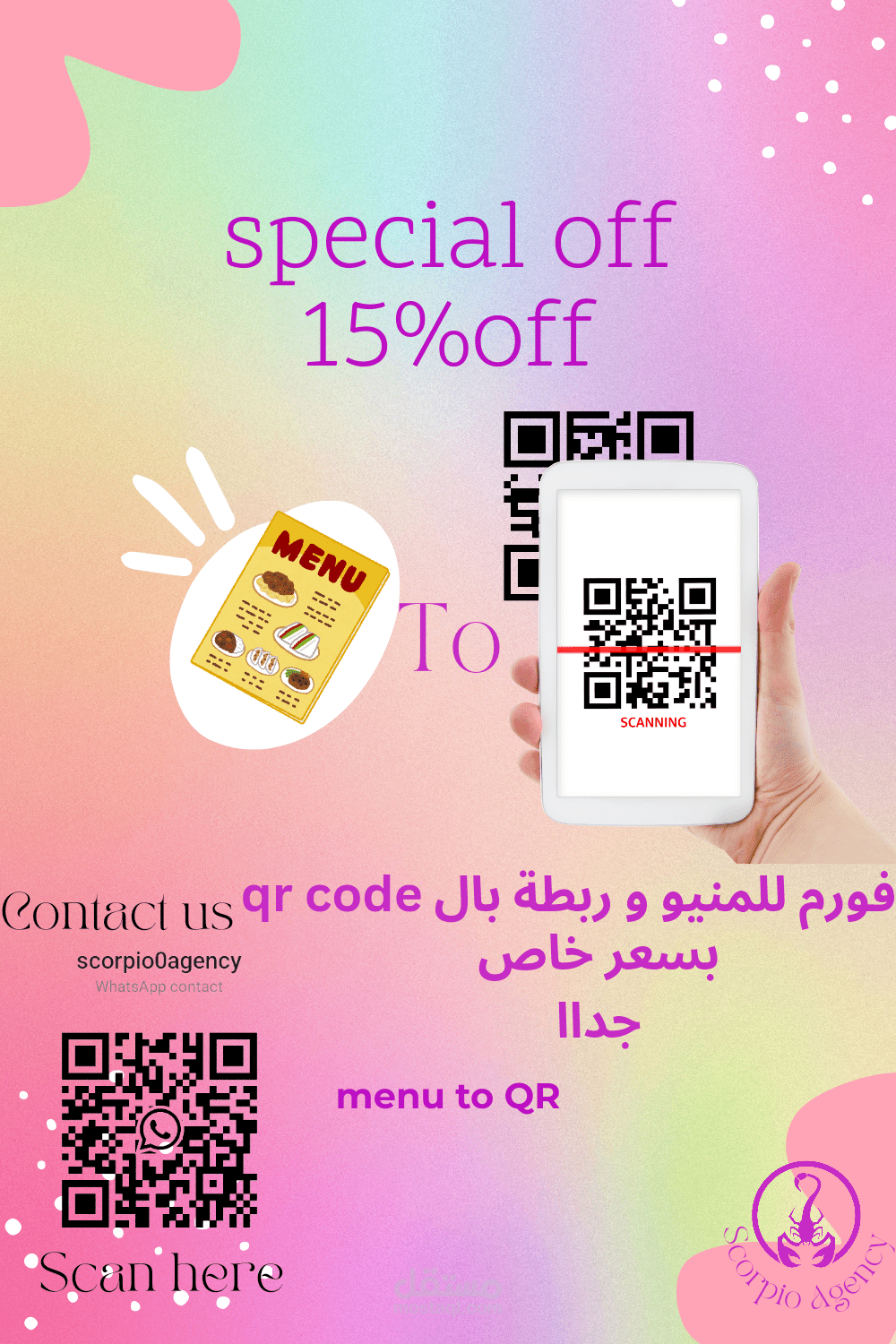 **حول منيو مطعمك إلى QR Code مع Scorpio Agency واستمتع بالمزايا العديدة!**