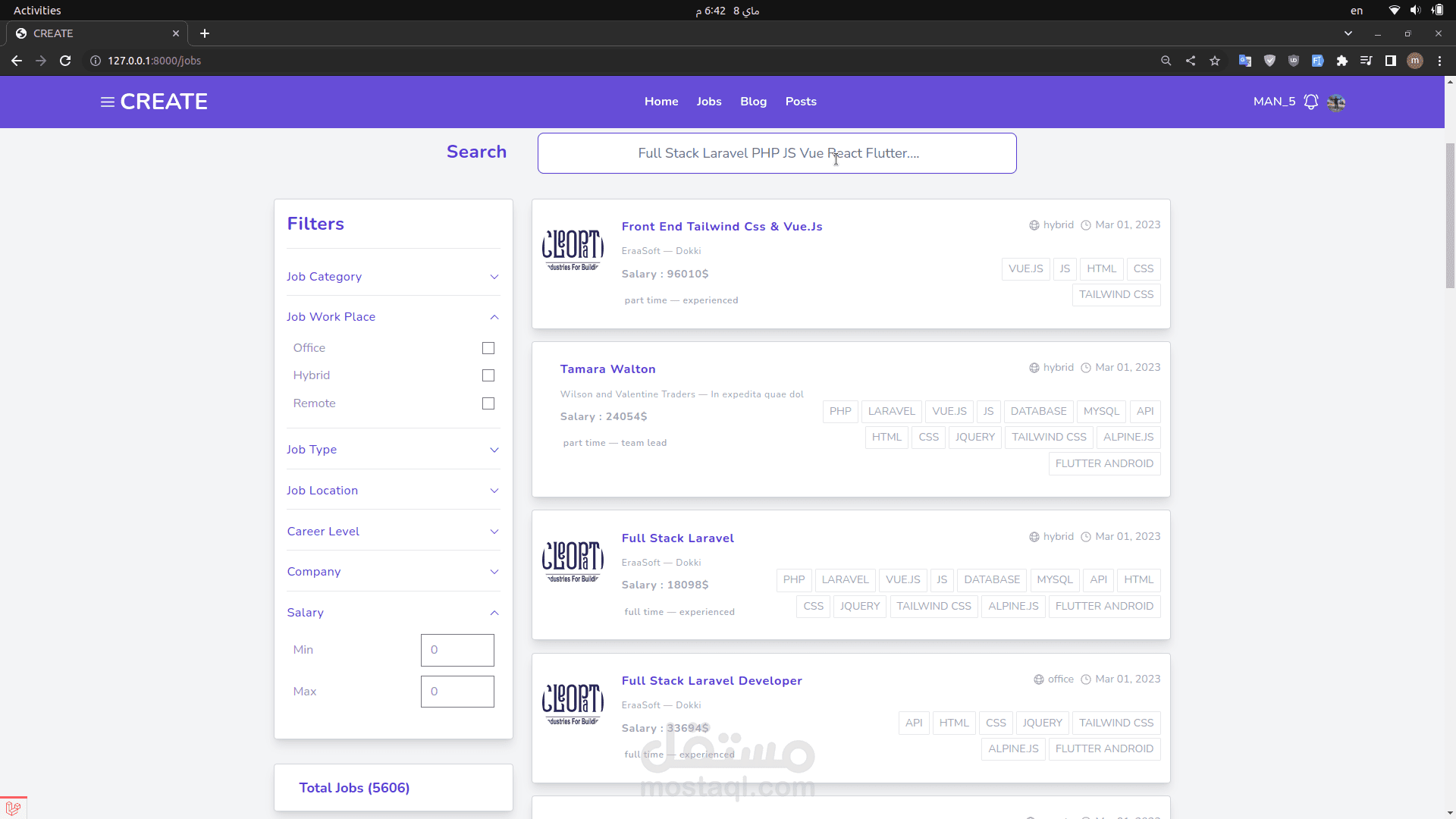 This project demonstrates my ability to create a dynamic and user-friendly platform that caters to the diverse needs of job seekers and professionals. By leveraging Laravel for the backend, MySQL for data management, and Blade and Alpine.js for the frontend, I delivered a solution that ensures real-time connectivity and a high level of user engagement.