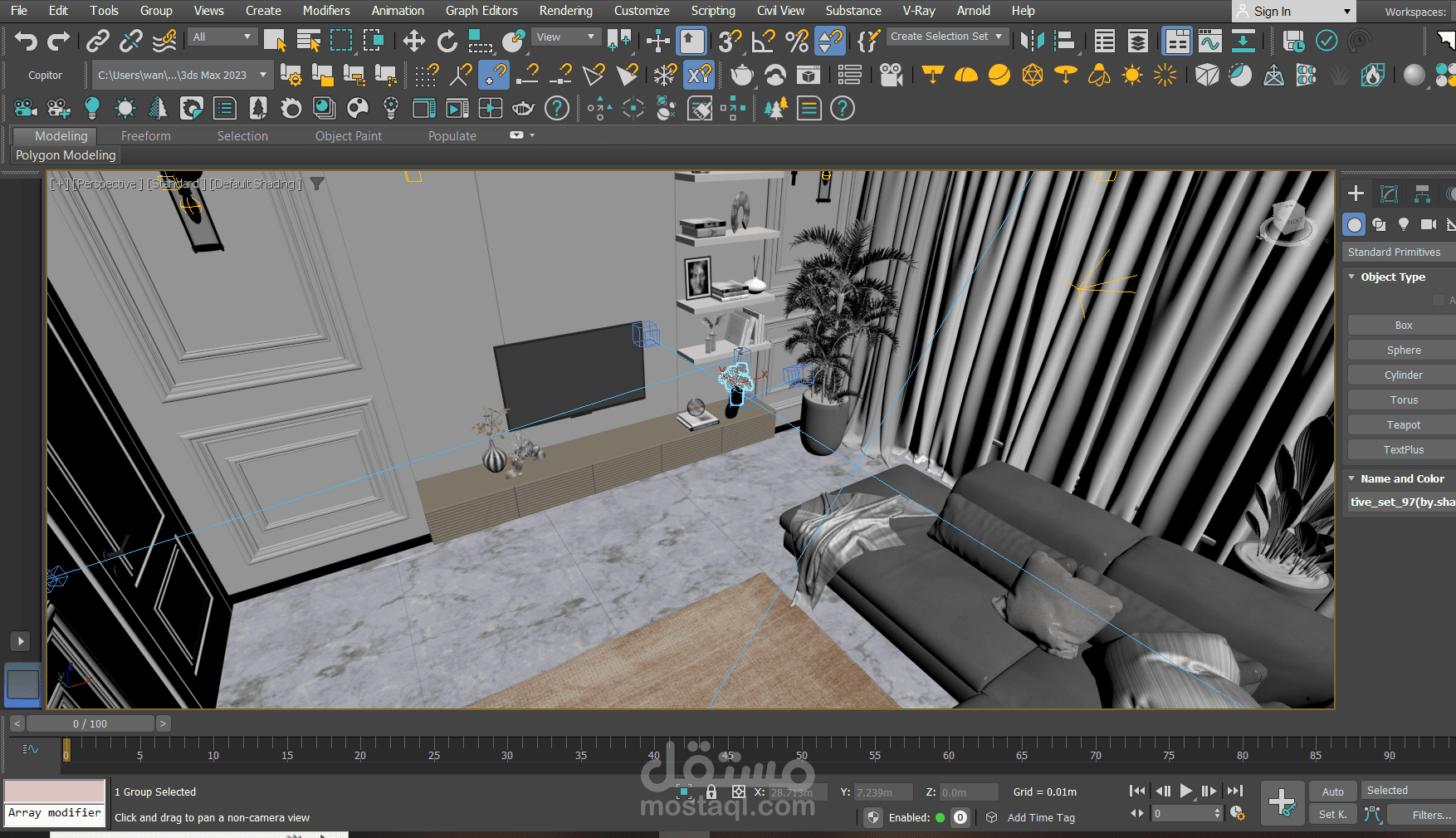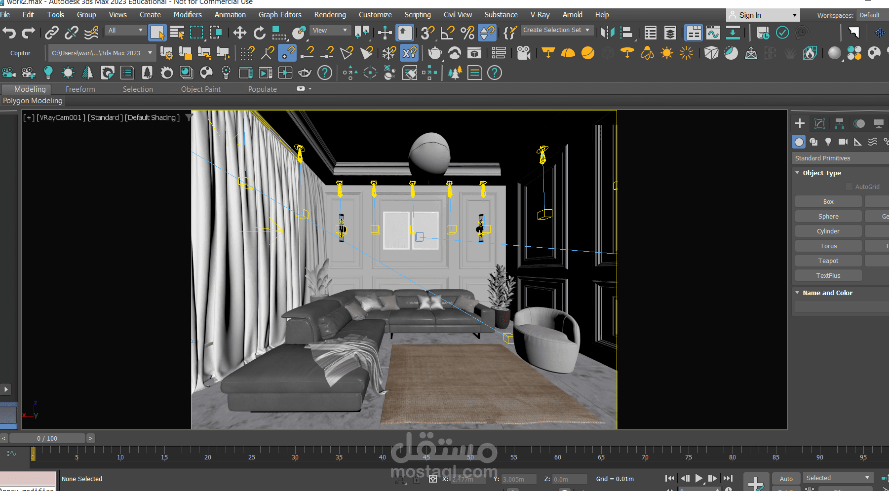 وتم رفع الحوائط وبدايه عمل الموديلينج باستخدام برنامج 3dmax