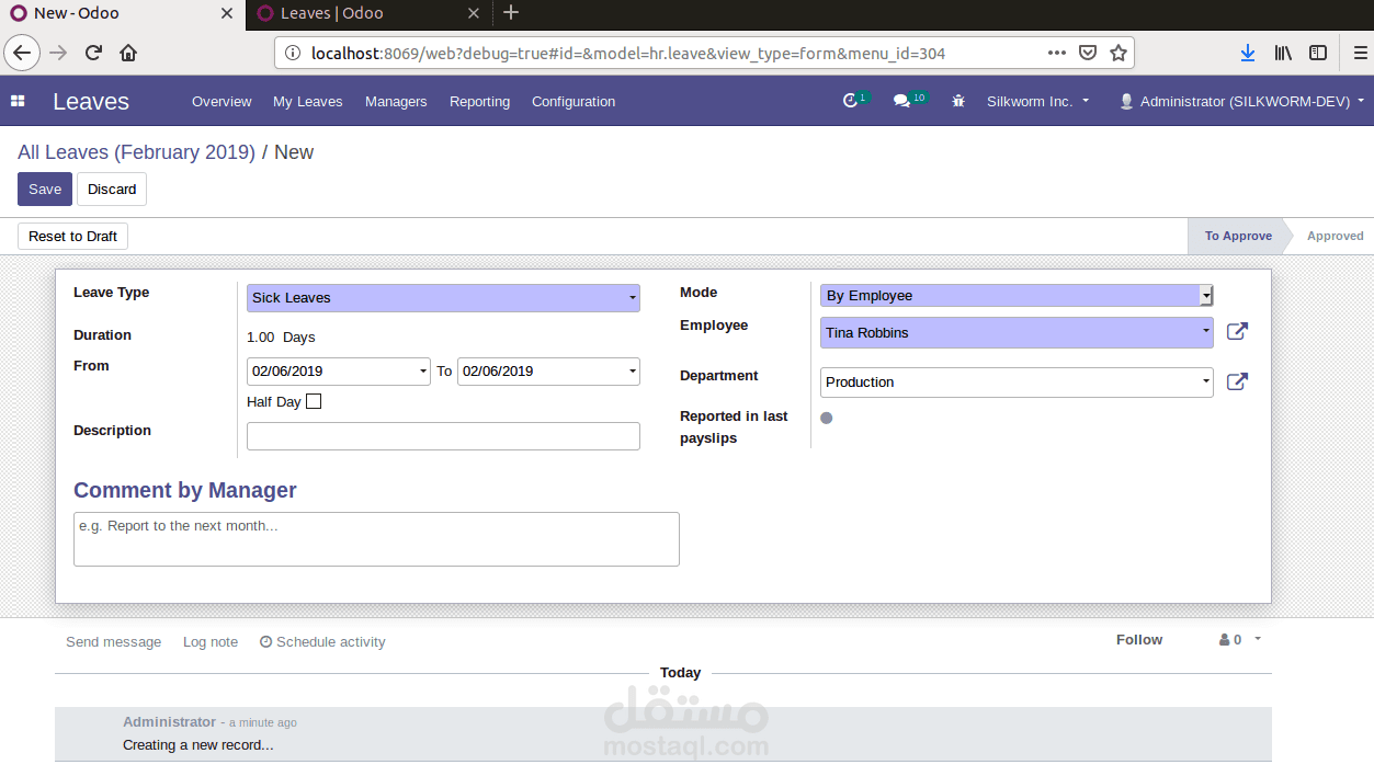 I created Module Requesting leave permission from the employee