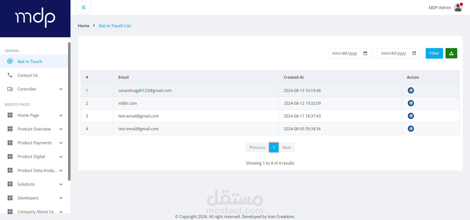 Dashboard for MDB website
