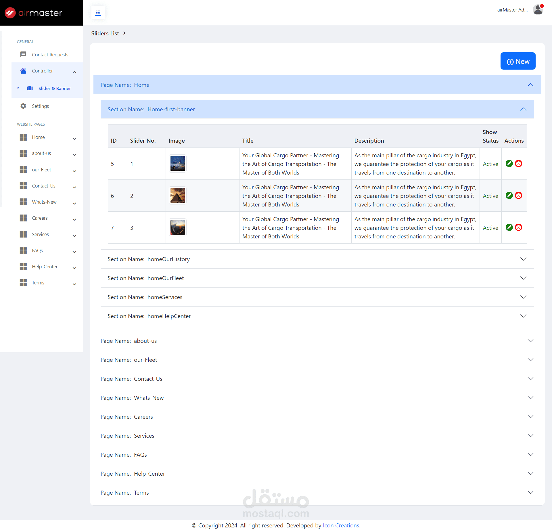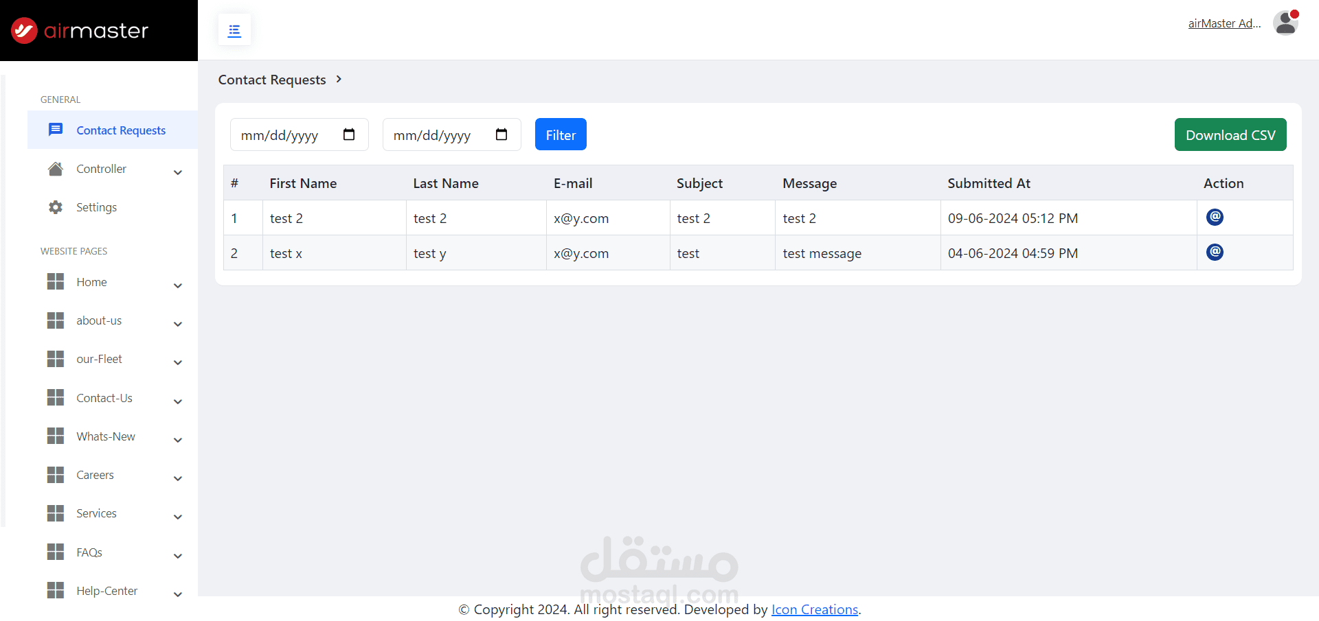 Dashboard for Air-Master website