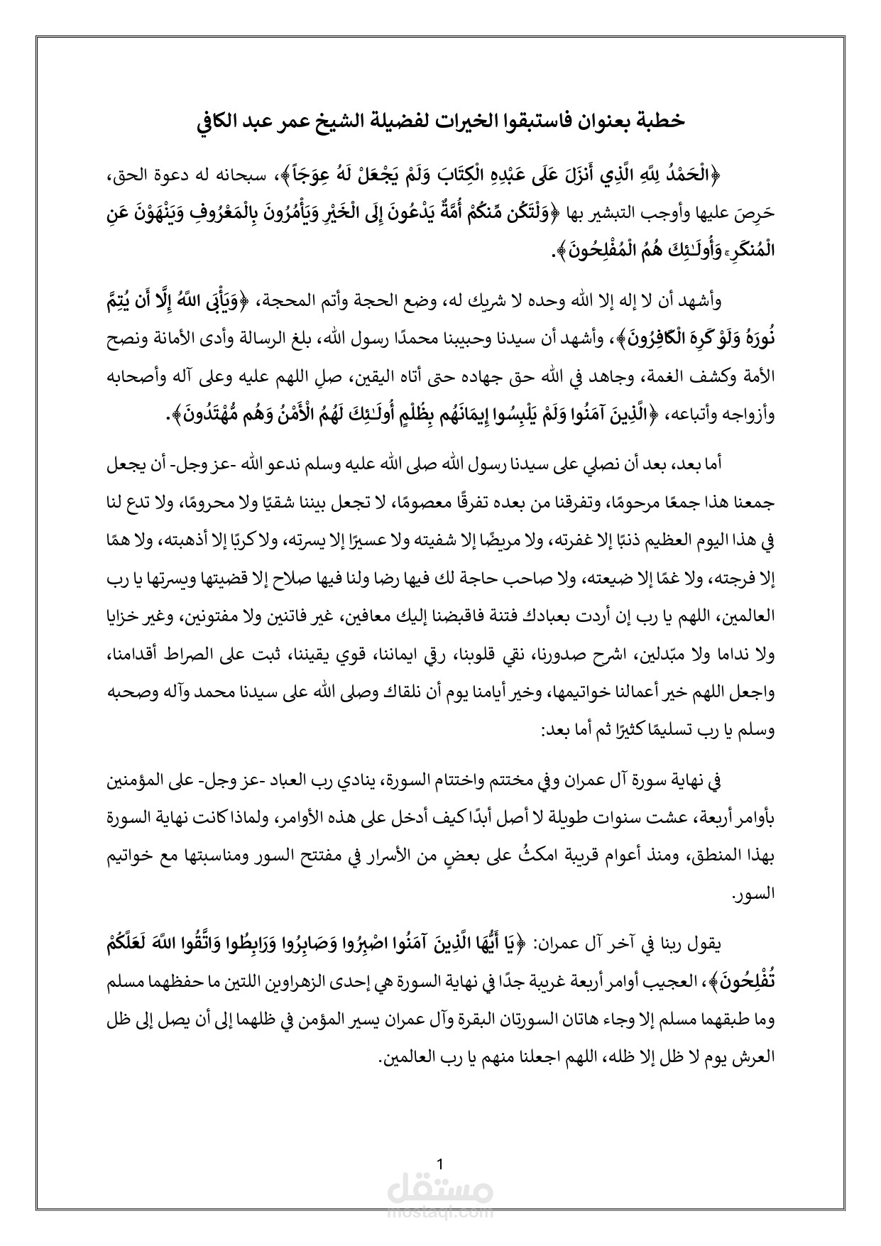 - عنوان المحاضرة: فاستبقوا الخيرات.