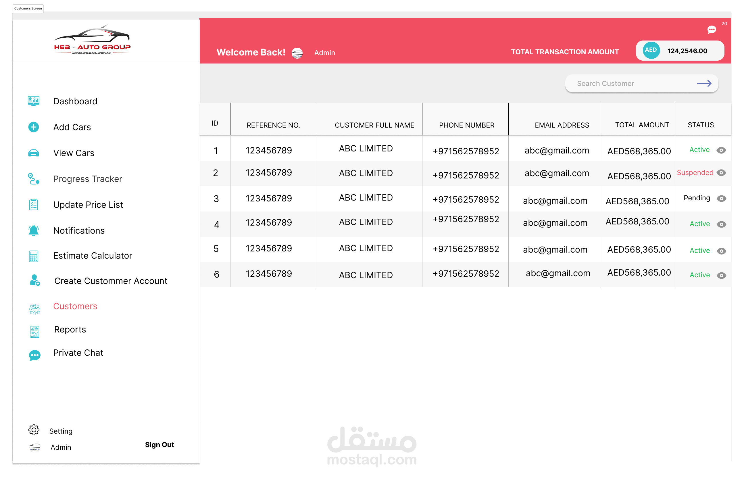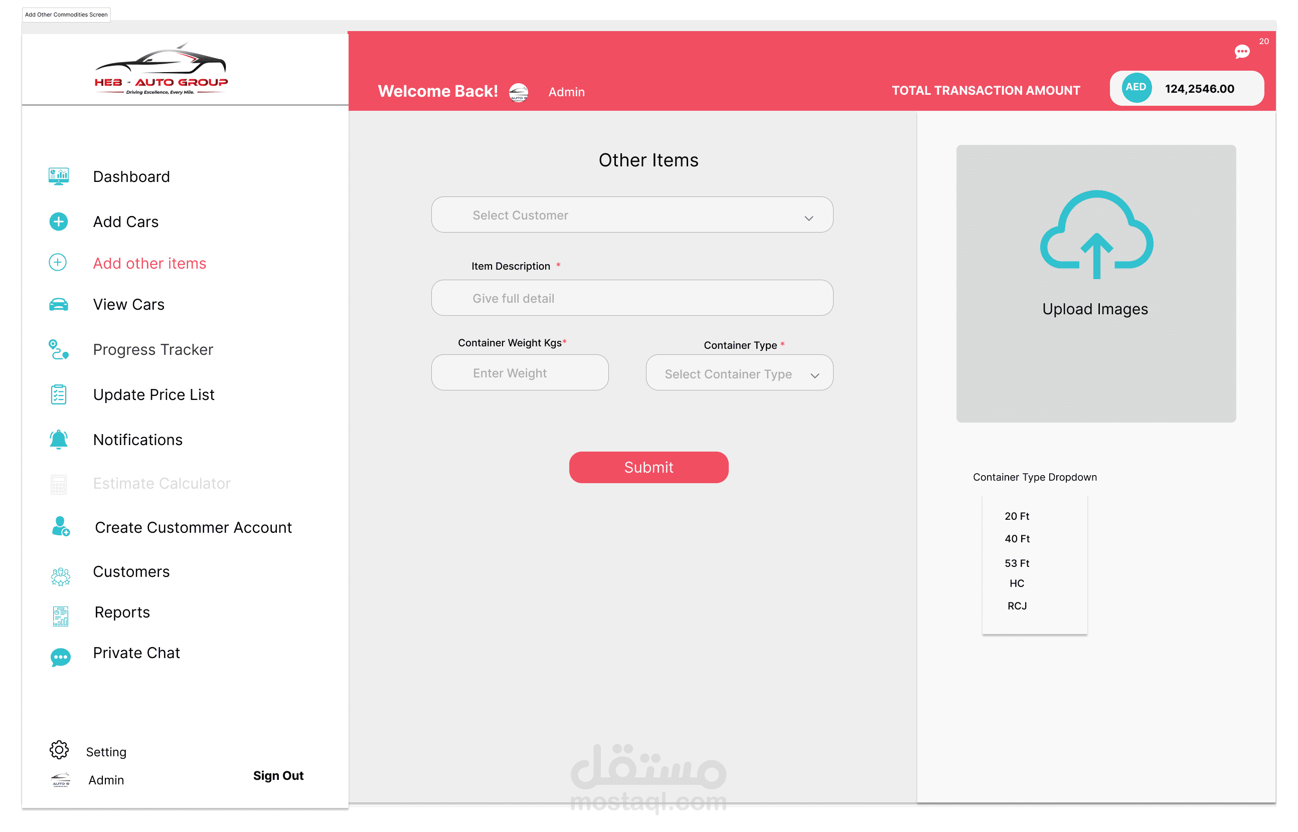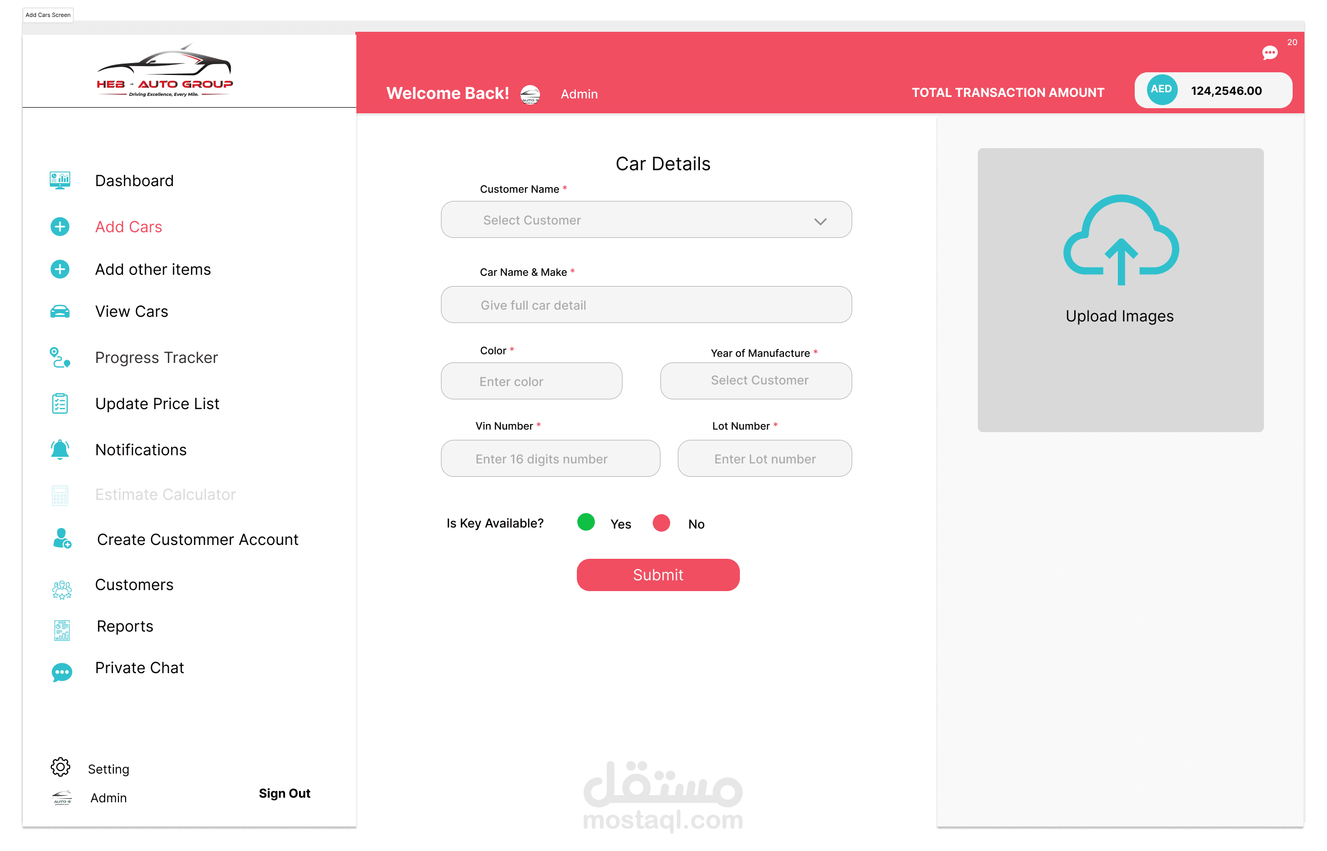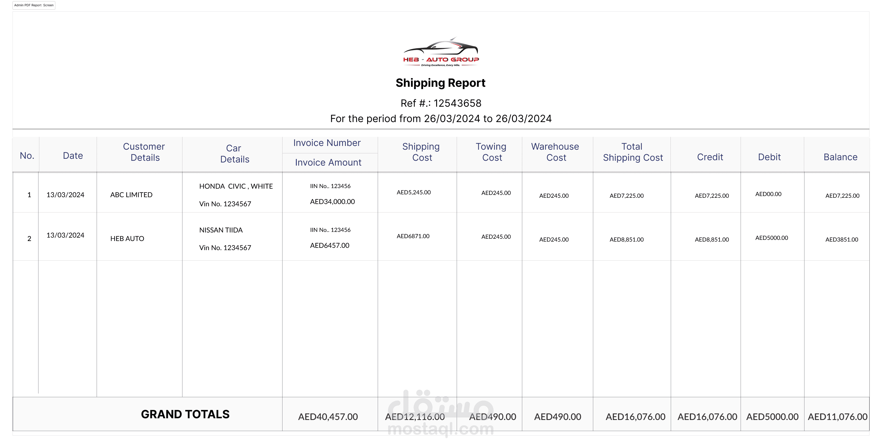 إدارة المخزون: يتابع السيارات التي تنتظر الشحن، بما في ذلك تفاصيل مثل العلامة التجارية، والطراز، والحالة.