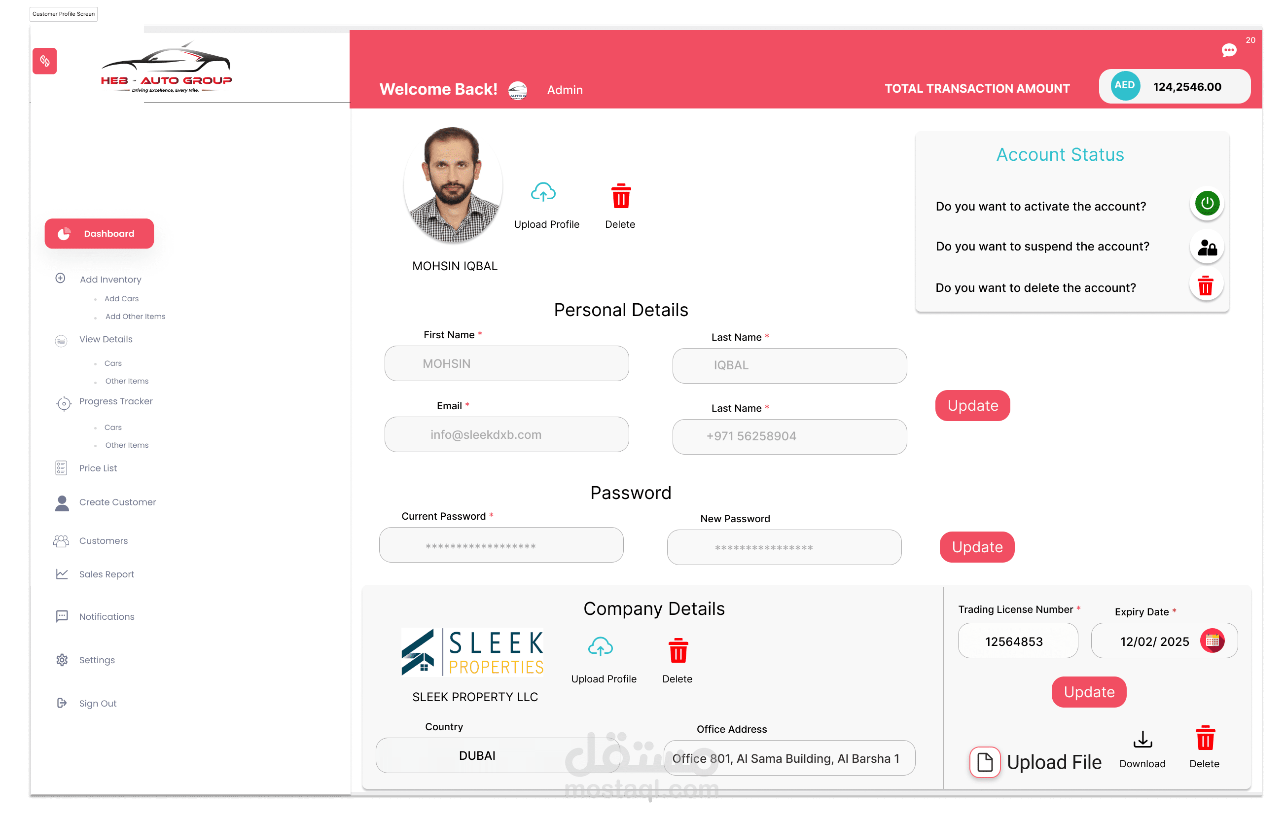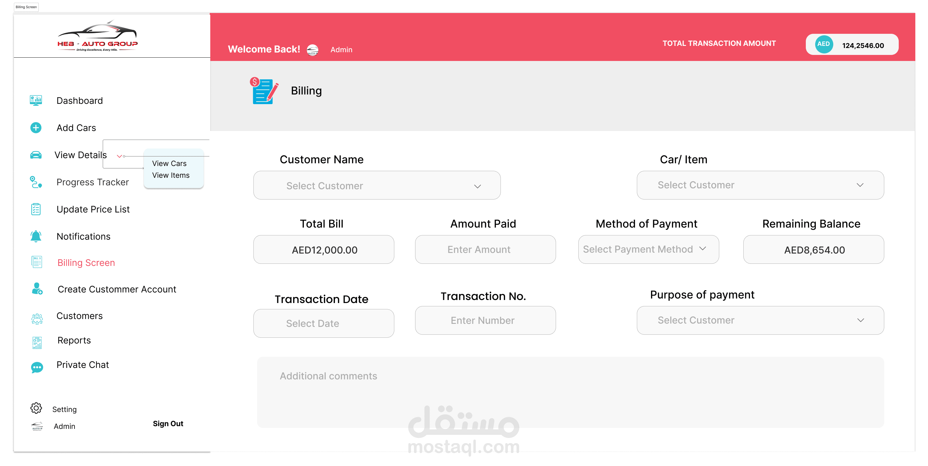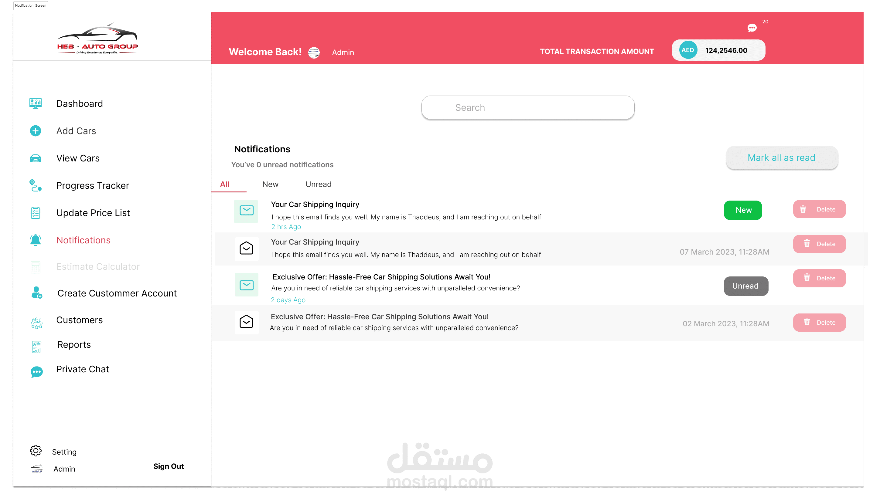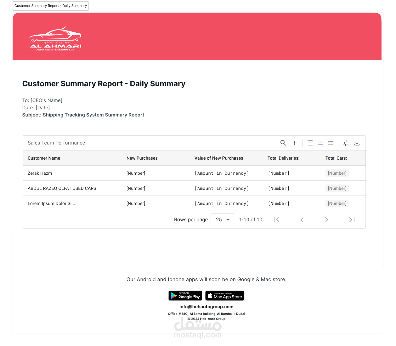 إدارة المخزون: يتابع السيارات التي تنتظر الشحن، بما في ذلك تفاصيل مثل العلامة التجارية، والطراز، والحالة.