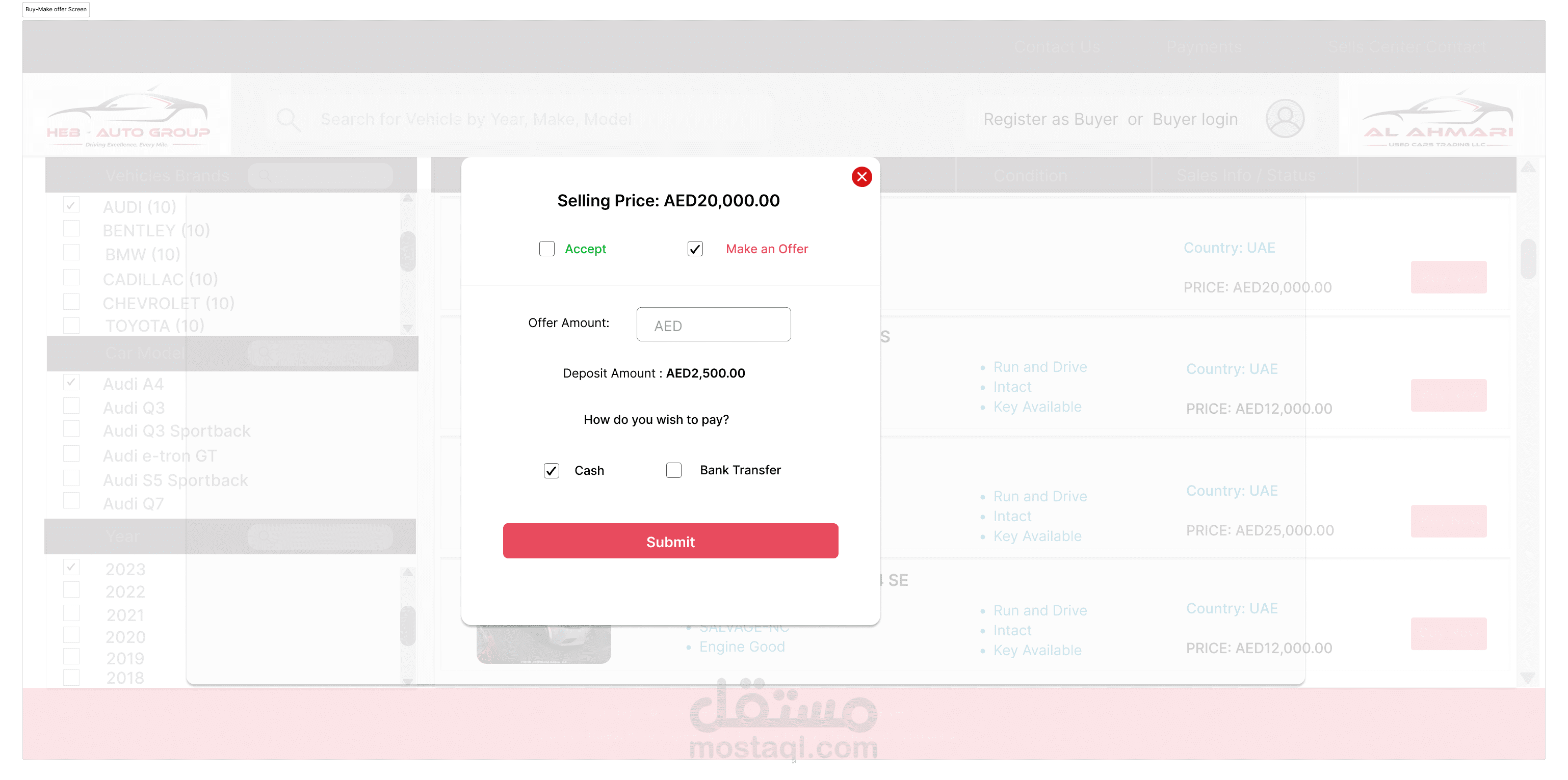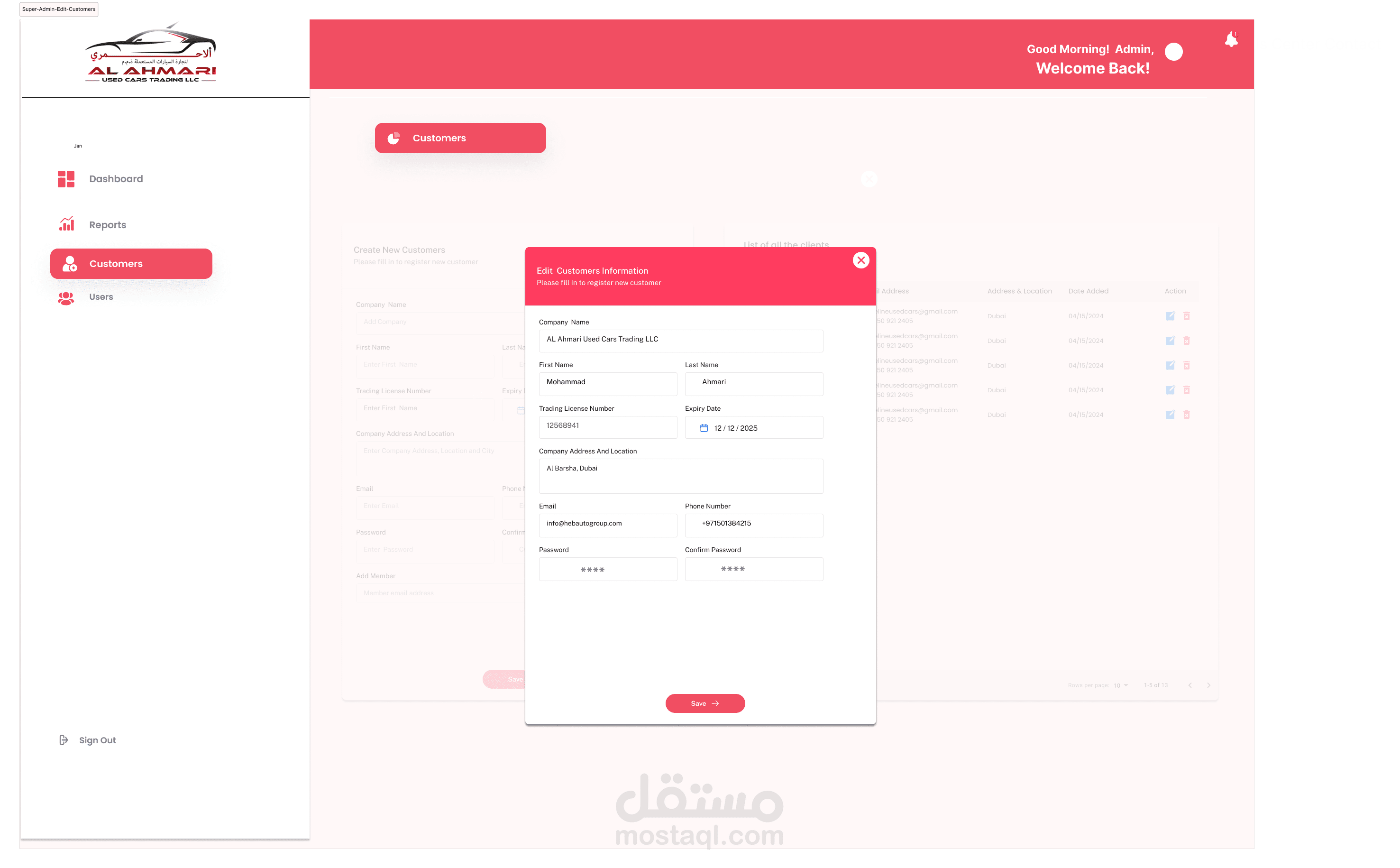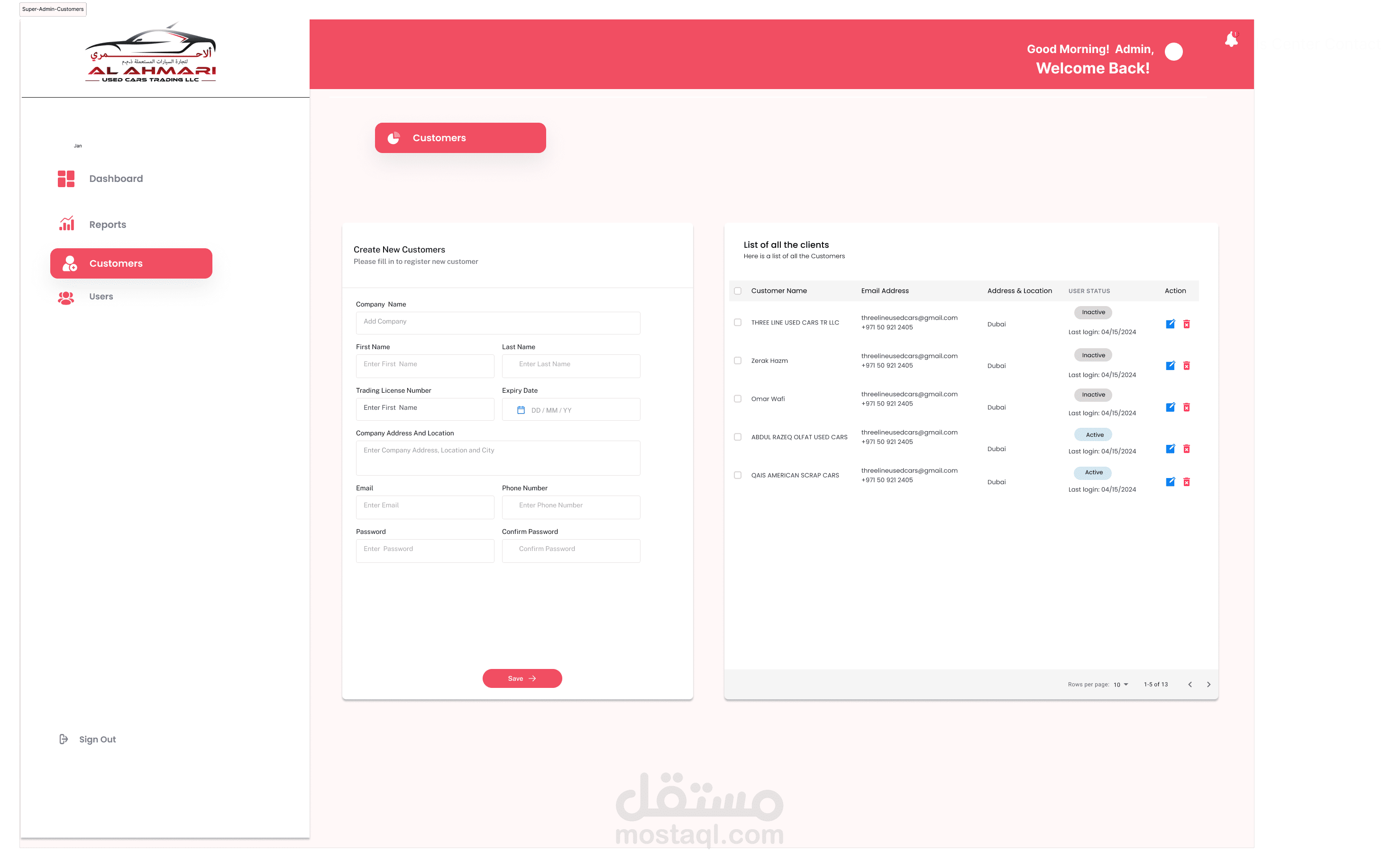 إدارة المخزون: يتتبع ويدير تفاصيل السيارات المتاحة للبيع، بما في ذلك العلامة التجارية، والطراز، وسنة الصنع، والمسافة المقطوعة، والتسعير.