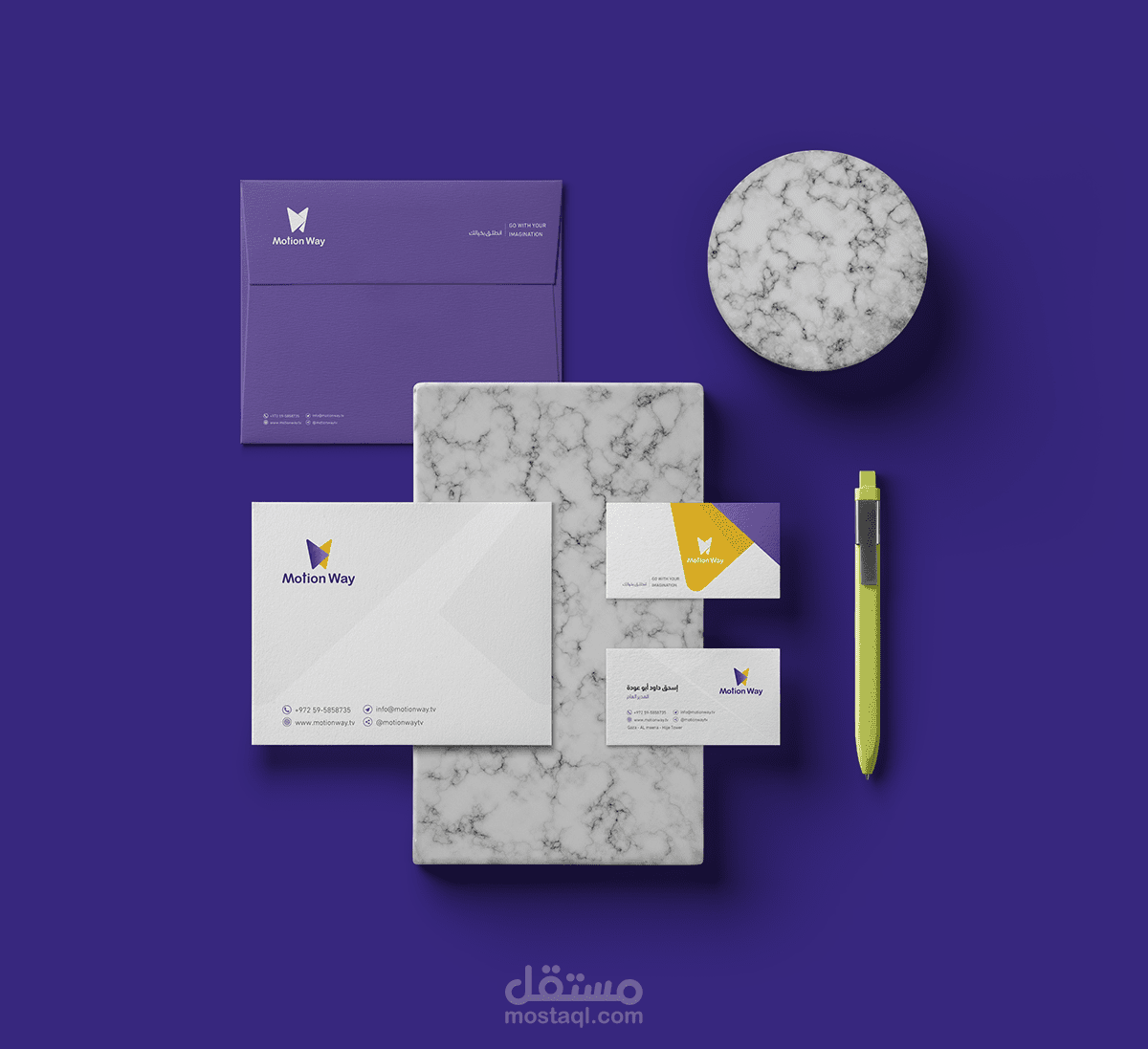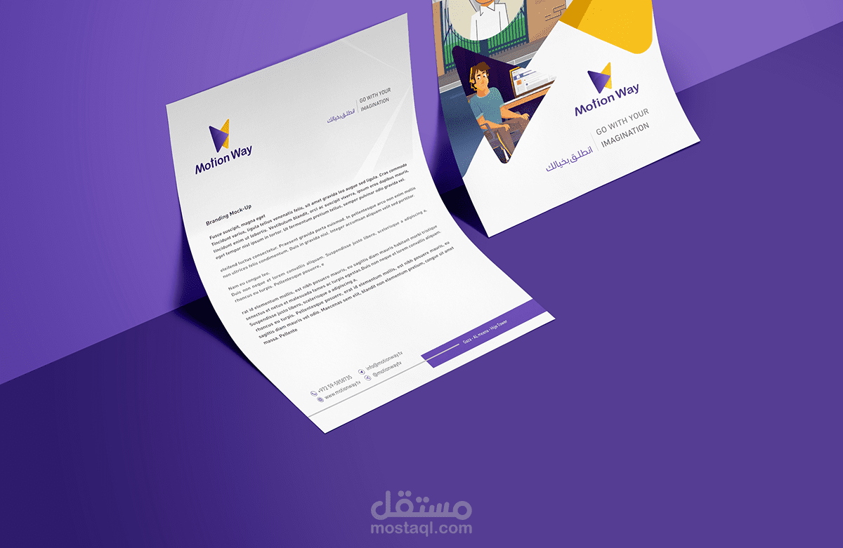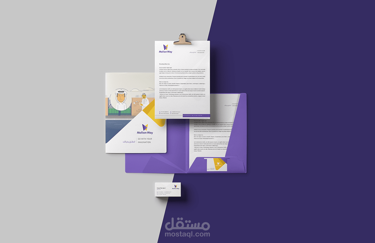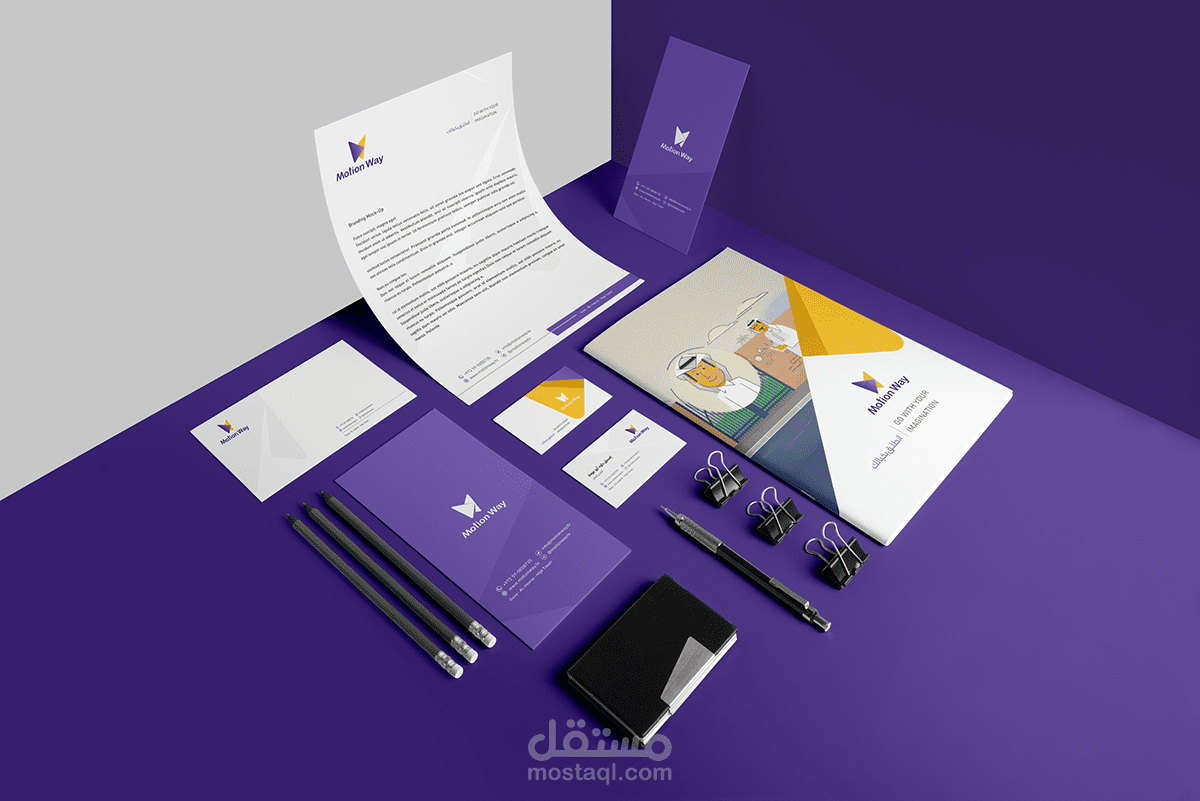 As the words affect greatly on the meaning, a good brand also has a great effect on its target audience minds, therefore, we were keen to design a complete visual identity for Motion Way Company.