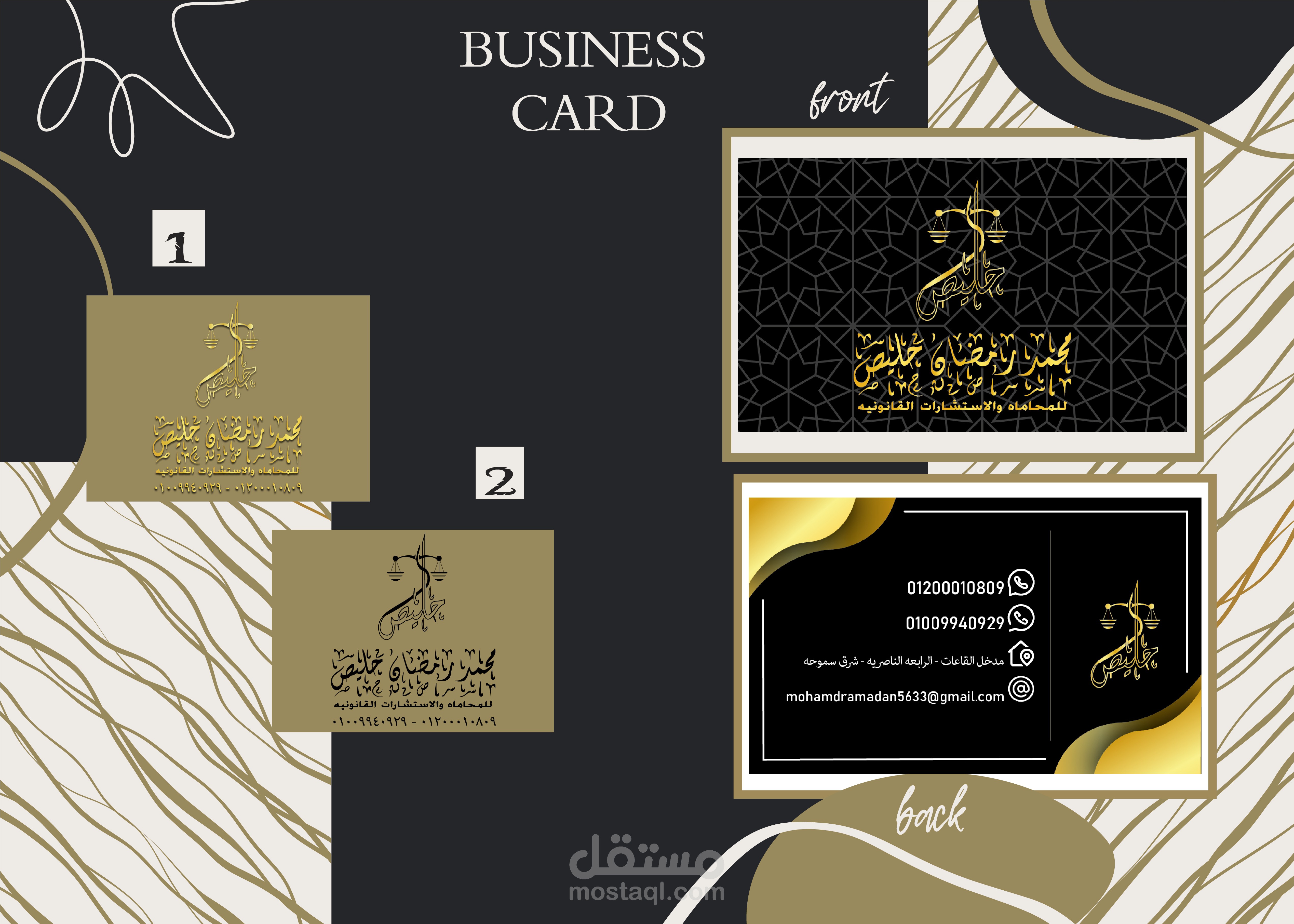 هويه كامله لمحامي مصري شامله الشعار والكارت الشخصي + لوجو كامل باللون الاسود واخر باللون الذهبي بناء علي احتياج العميل