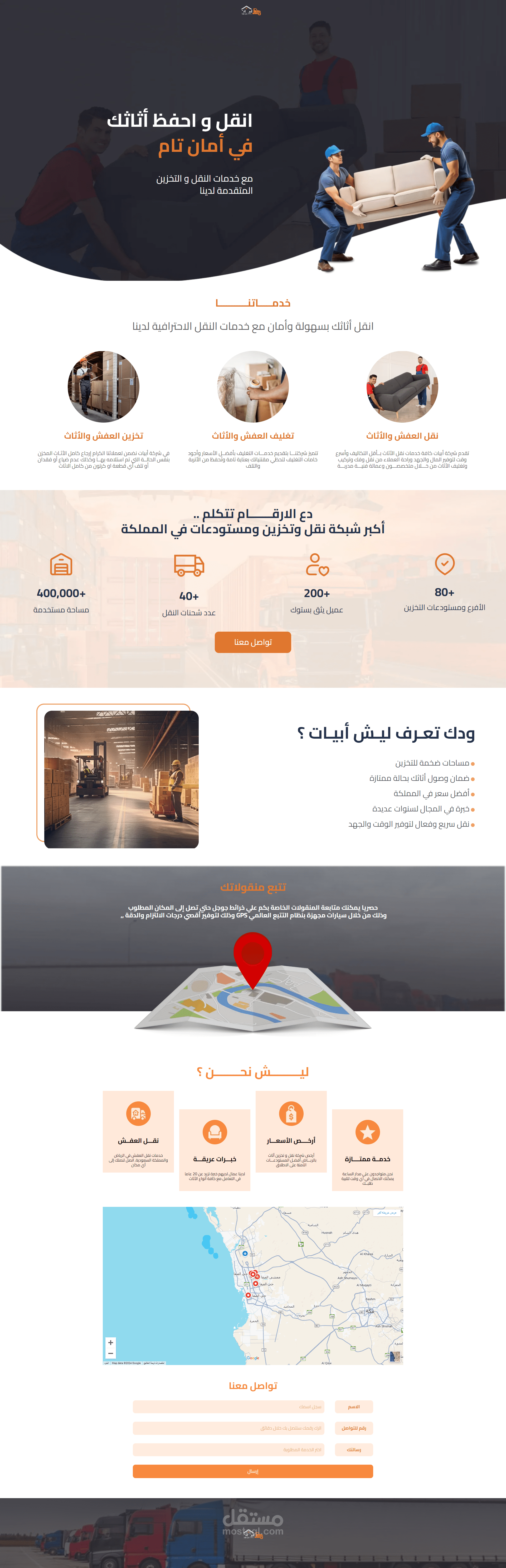 صفحة هبوط علي ووردبريس لشركه مختصه بالنقل والتخزين والمستودعات في المملكة العربيه السعوديه