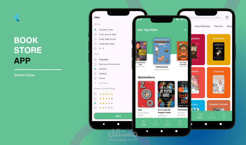 - تنقل سلس: تم تصميم التطبيق مع مراعاة تجربة المستخدم، حيث يحتوي على قائمة بسيطة وسهلة التنقل تتيح للمستخدمين الوصول بسرعة إلى الأقسام المختلفة مثل فئات الكتب، مواقع المتاجر، النشرات الإخبارية، وإعدادات الحساب.