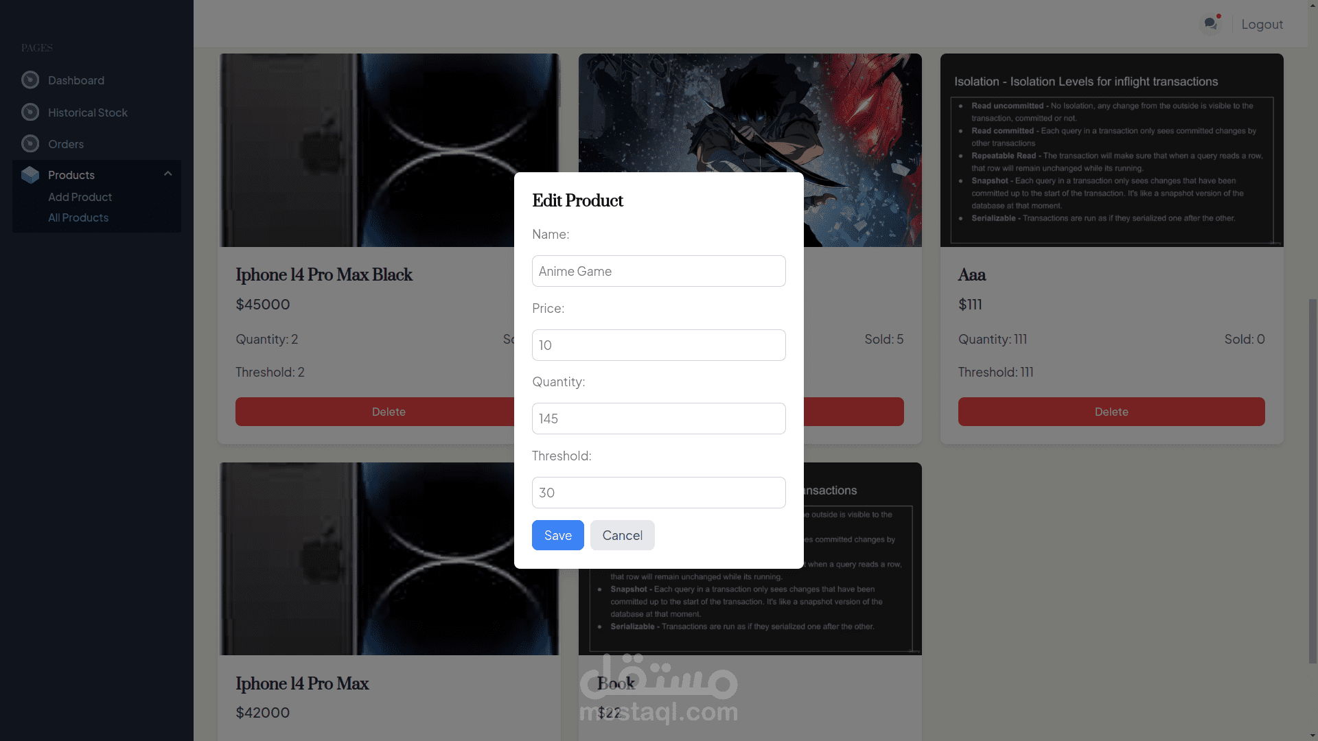 - نظام اشعارات عند نزول المخزون عن حد معين