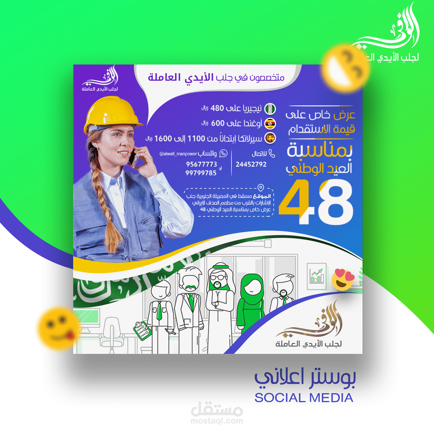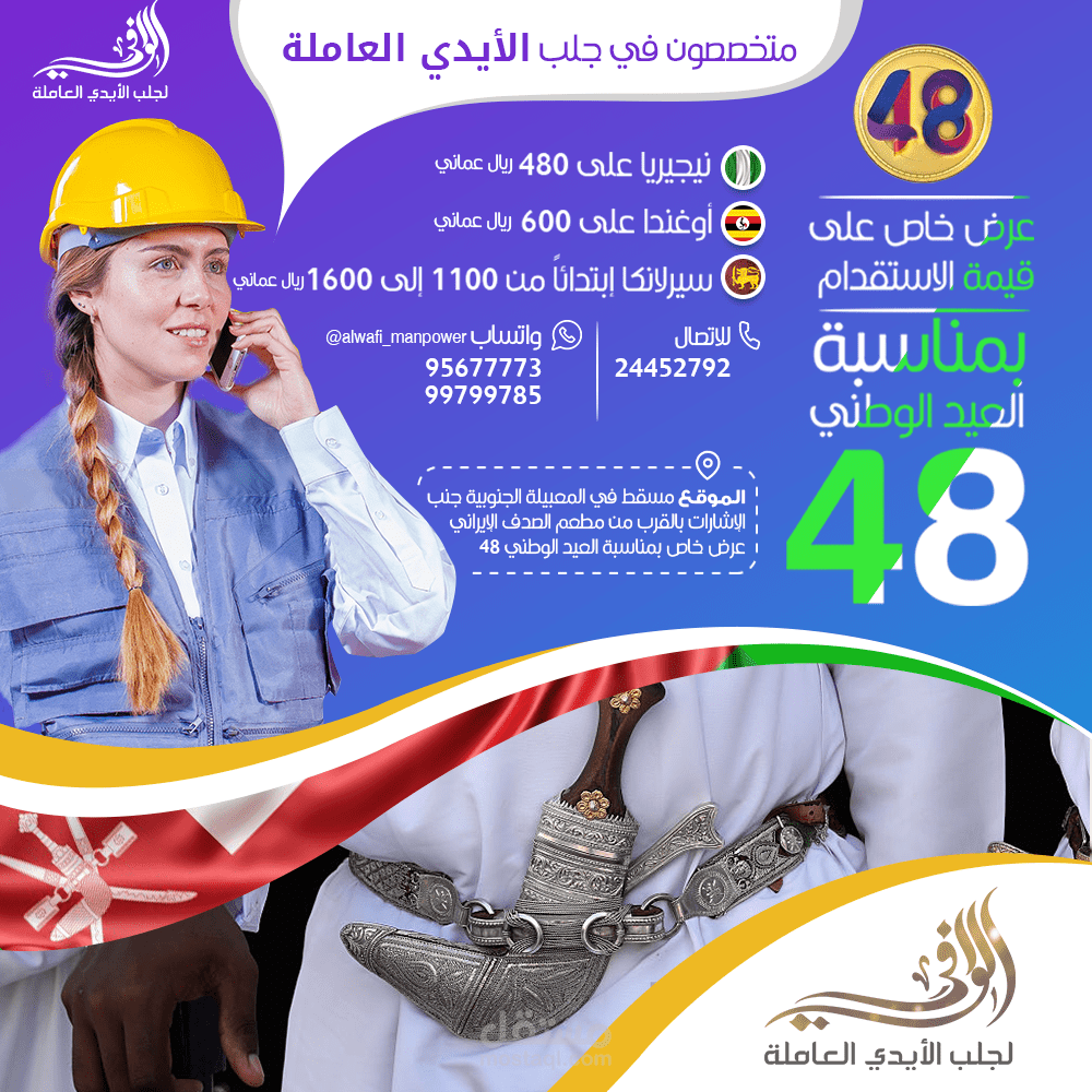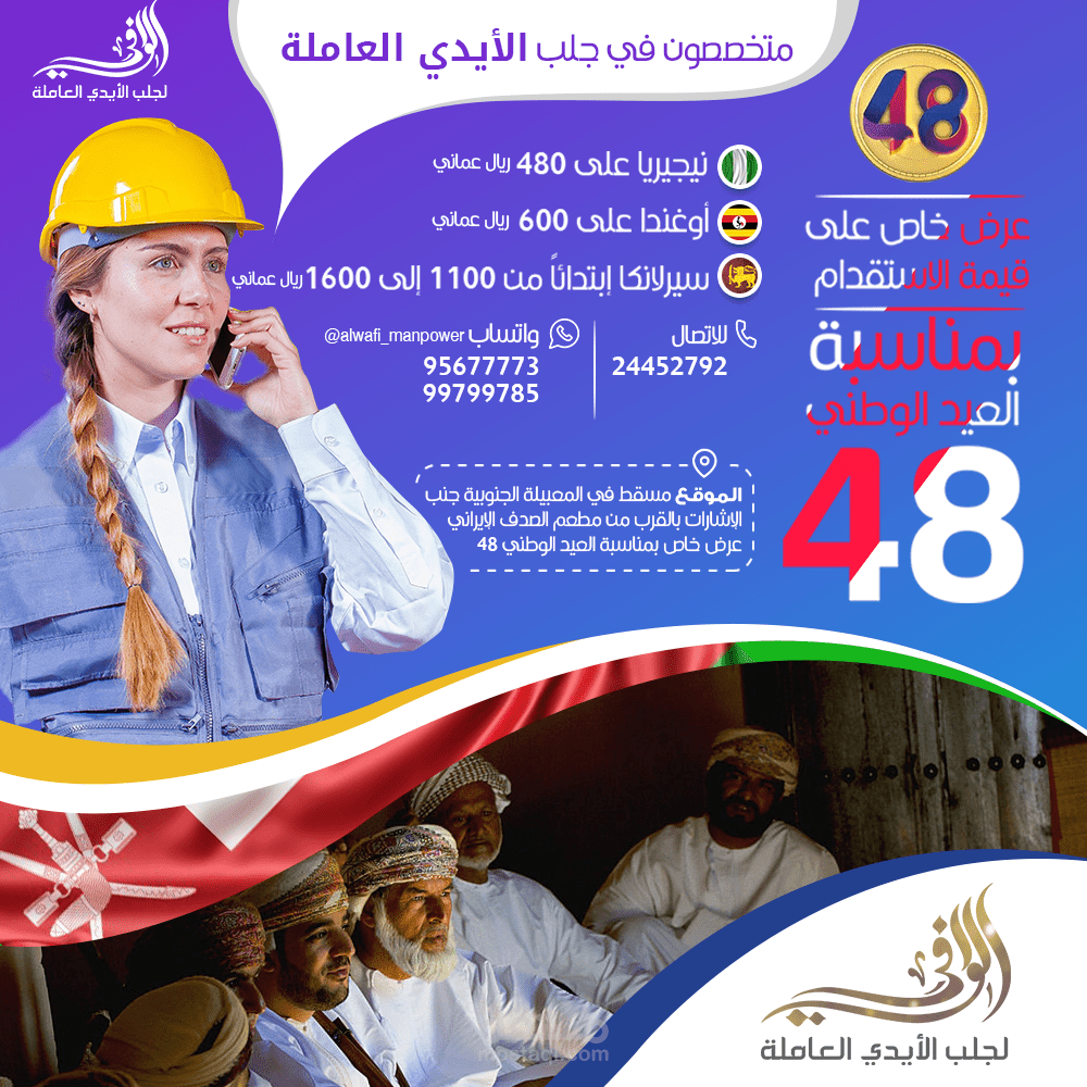 صممت بوستر اعلاني حصري لشركة عمانية لجلب اليد العاملة . هذه جميع بعد و قبل التعديلات من العميل .