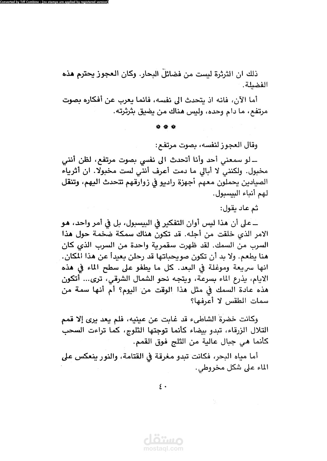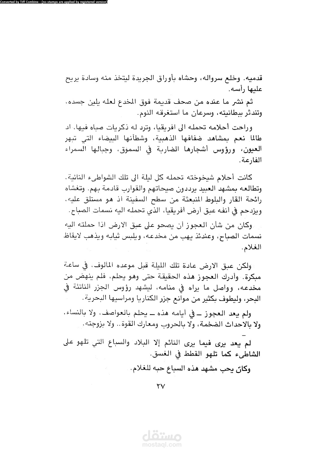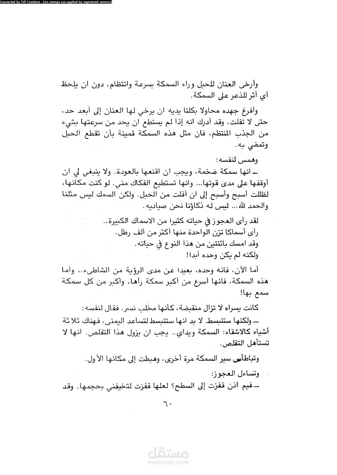 العجوز والبحر أو الشيخ والبحر (بالإنجليزية: The Old Man and the Sea) وهي رواية للكاتب إرنست همنجواي قام بتأليفها في هافانا، كوبا في عام 1952 وكانت إحدى روائعه إلى جانب «وداعاً للسلاح» و«ثلوج كلمنجارو» وغيرها. حاز إرنست همنجواي بفضل العجوز والبحر على جائزة نوبل في الأدب وجائزة بوليتزر الأمريكية "لأستاذيته في فن الرواية الحديثة ولقوة أسلوبه كما يظهر ذلك بوضوح في قصته الأخيرة "العجوز والبحر" كما جاء في تقرير لجنة نوبل.