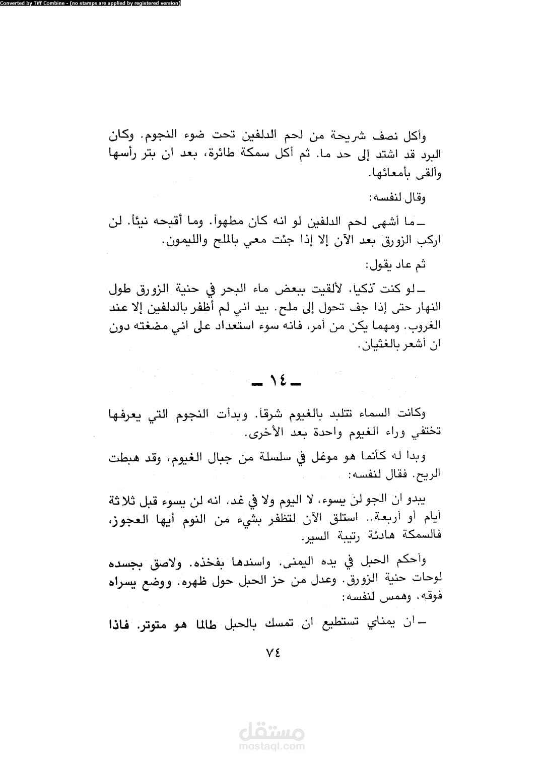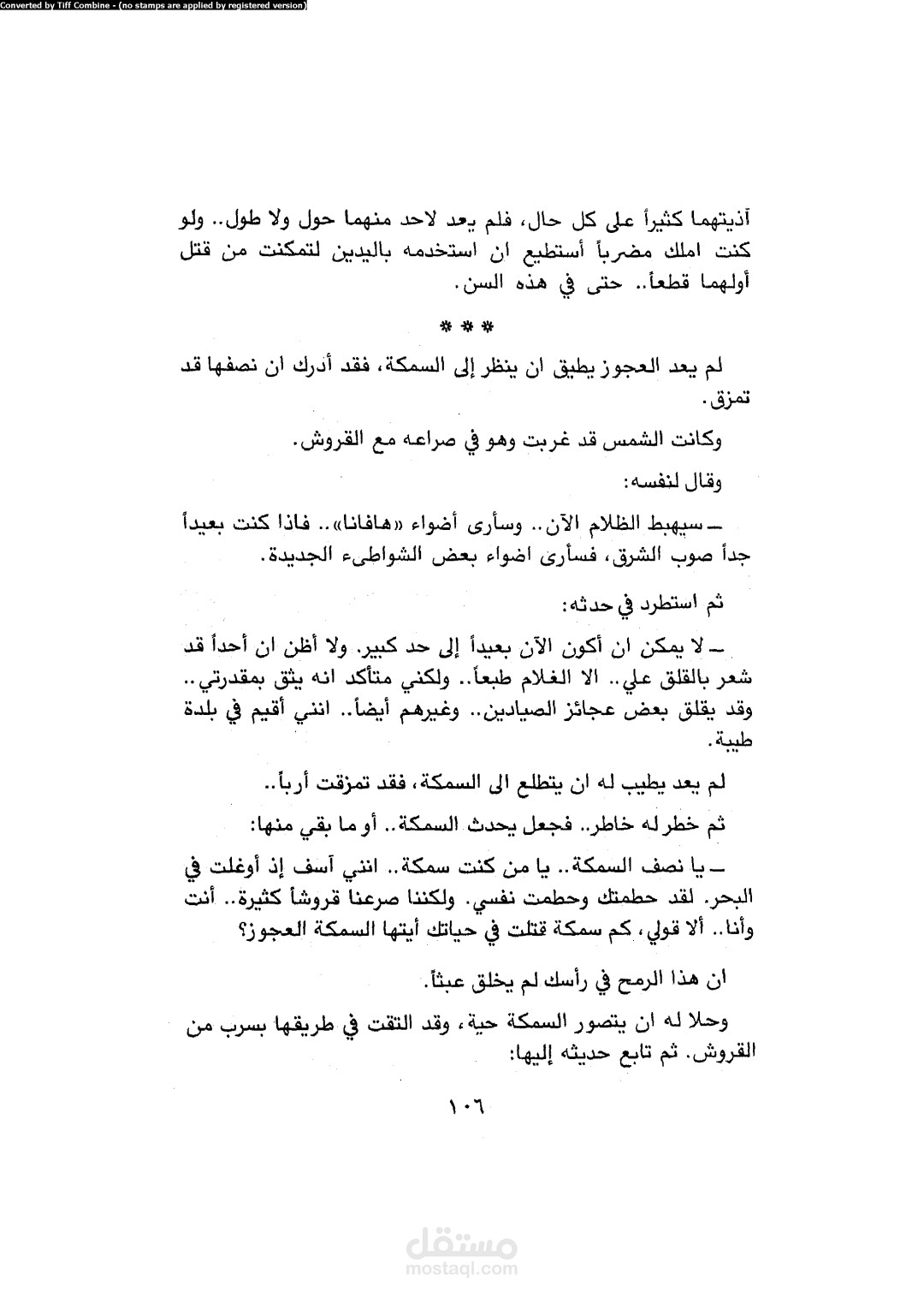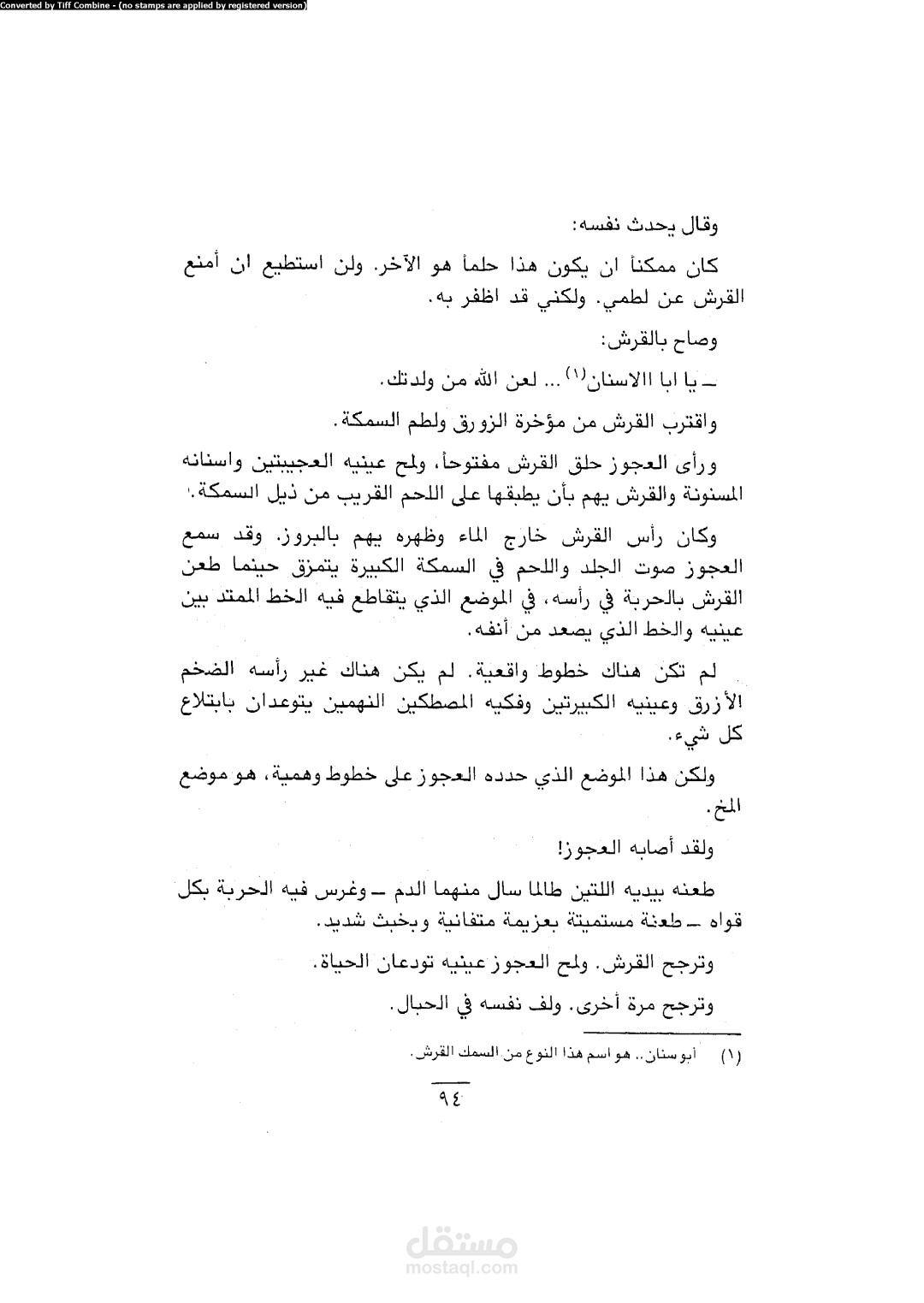 العجوز والبحر أو الشيخ والبحر (بالإنجليزية: The Old Man and the Sea) وهي رواية للكاتب إرنست همنجواي قام بتأليفها في هافانا، كوبا في عام 1952 وكانت إحدى روائعه إلى جانب «وداعاً للسلاح» و«ثلوج كلمنجارو» وغيرها. حاز إرنست همنجواي بفضل العجوز والبحر على جائزة نوبل في الأدب وجائزة بوليتزر الأمريكية "لأستاذيته في فن الرواية الحديثة ولقوة أسلوبه كما يظهر ذلك بوضوح في قصته الأخيرة "العجوز والبحر" كما جاء في تقرير لجنة نوبل.