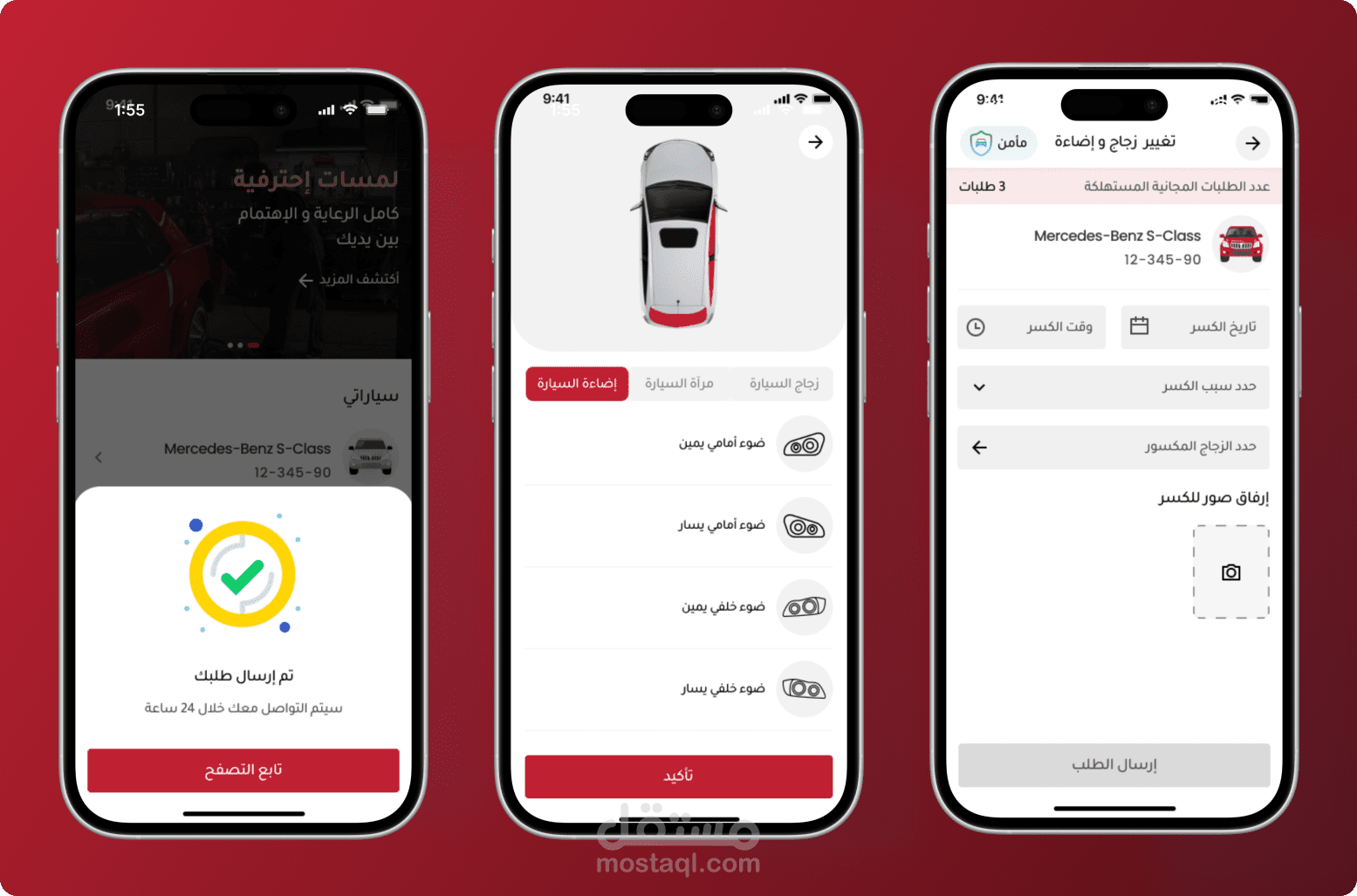 ▬ خدمات شاملة: طلب خدمات إصلاح زجاج السيارات، طلبات السحب (الونش)، وتوفير سيارات بديلة.