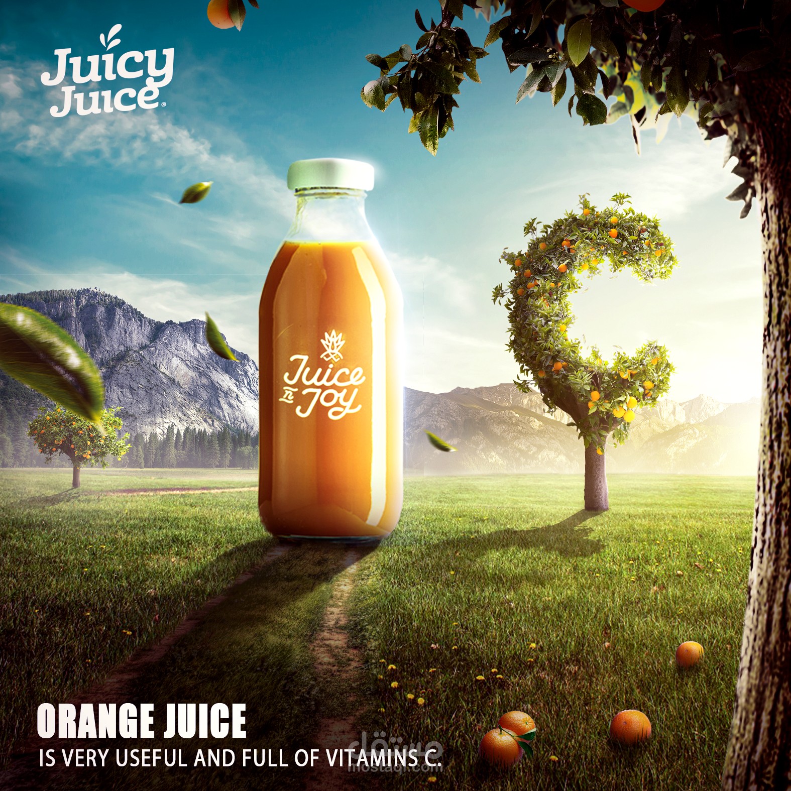 عمل فكره جديده مع دمج الصور (عصير برتقال غنى بفيتامين C)