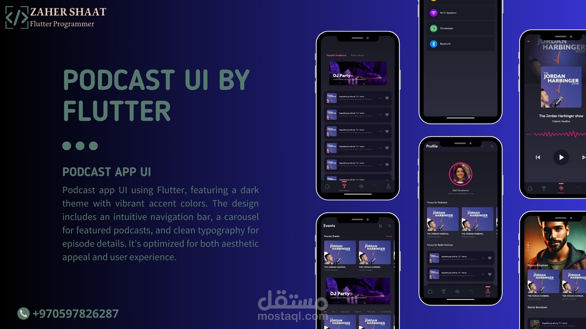 تطبيق غرضه عرض عروض البودكاست، وفعالياته، يسمح بتفضيل البودكاست أو رؤية الشائع حالياً، وواجهات خاصة بالفعاليات مدعومة بخريطة للإتجاهات والمواقع على الخريطة، كما يمكنك التحكم بإعدادات للصوت والموسيقى للتمتع بأجمل مستوى من الصوت والنقاء.
