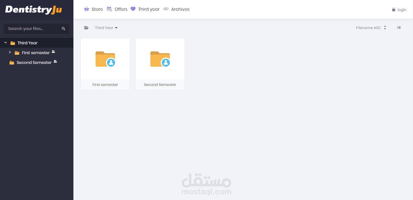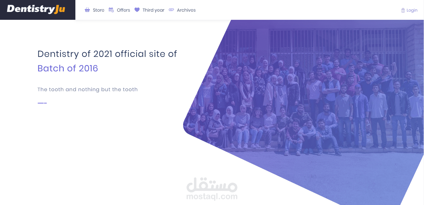 تصميم وبرمجة موقع ومتجر لكلية طلبة طب أسنان وإنشاء نظام ضمن لعرض ملفات للطلاب بالاستناد إلى السنة الدراسية للطالب ، ويتضمن المتجر إمكانية شراء المعدات الخاصة بالطلبة ، وعروض خاصة بالكلية يمكن شراؤها بنسب خصم معينة