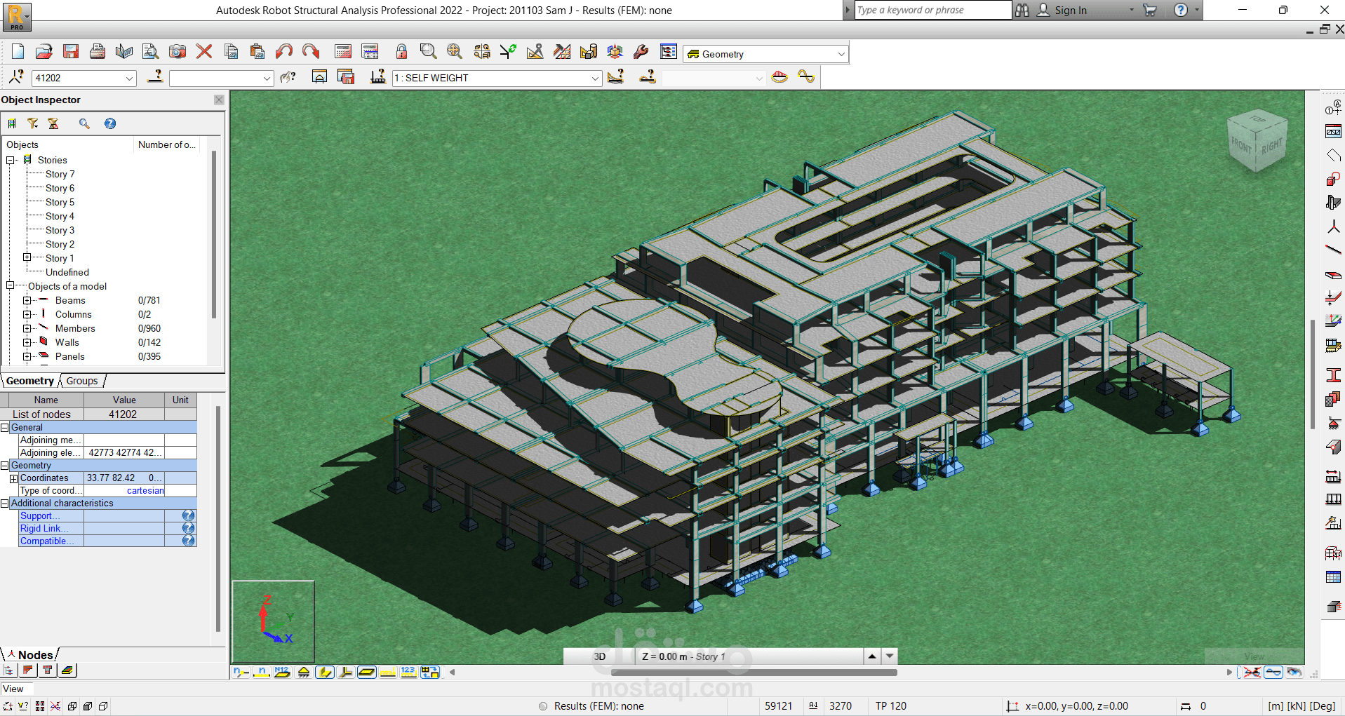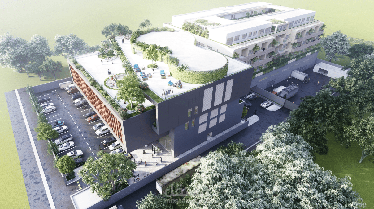 يتميز هذا العمل انه في منطقة ذات نشاط زلزالي ويوجد مساحات شاسعة بين الأعمدة لضرورة المعايير الجمالية خاصة في المبنى التجاري لذلك قمت بدراسة انشائية لهذا المبنى بدقة و جودة عالية باقل كلفة ممكنة ومع تطبيق كل معايير السلامة وفقا" للكود الاميركي ACI 318 – 05 والبريطانيUBC97. بالاضافة الى القيام بالرسومات والتصميمات التنفيذية بدقة ووضوح.