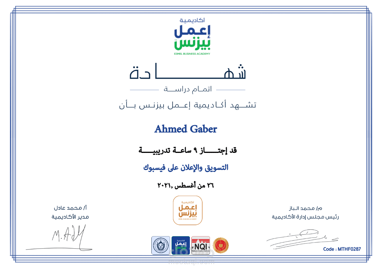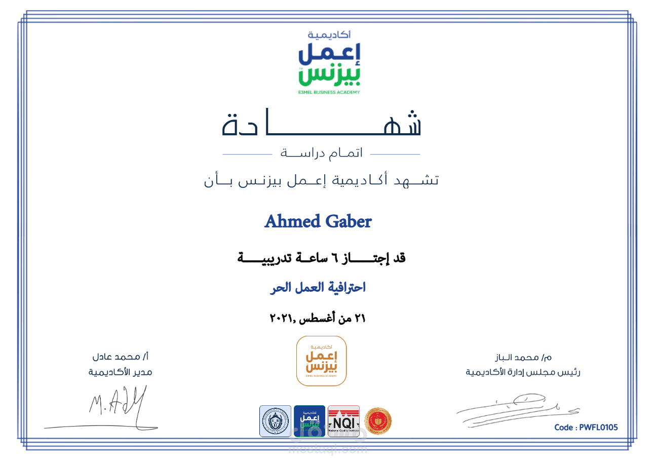 ملحوظة: تعدد الشهادات لا ينبؤ باالضرورة عن كفاءة الفريلانسر ولكن هي مجرد ذكريات لأشياء أحبها ودرستها وأريد عرضها لا أكثر أو أقل