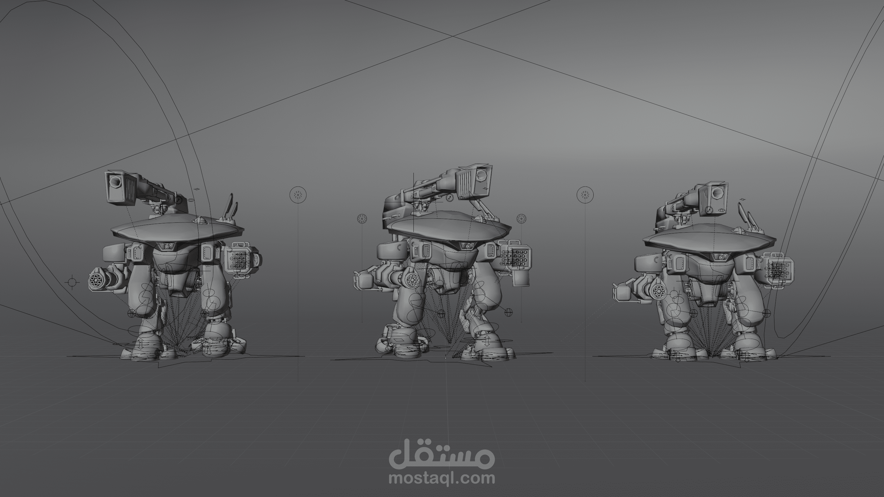 Robot Animation Walk Cycle, Rocket shoot and Gun Recoil using Blender.
