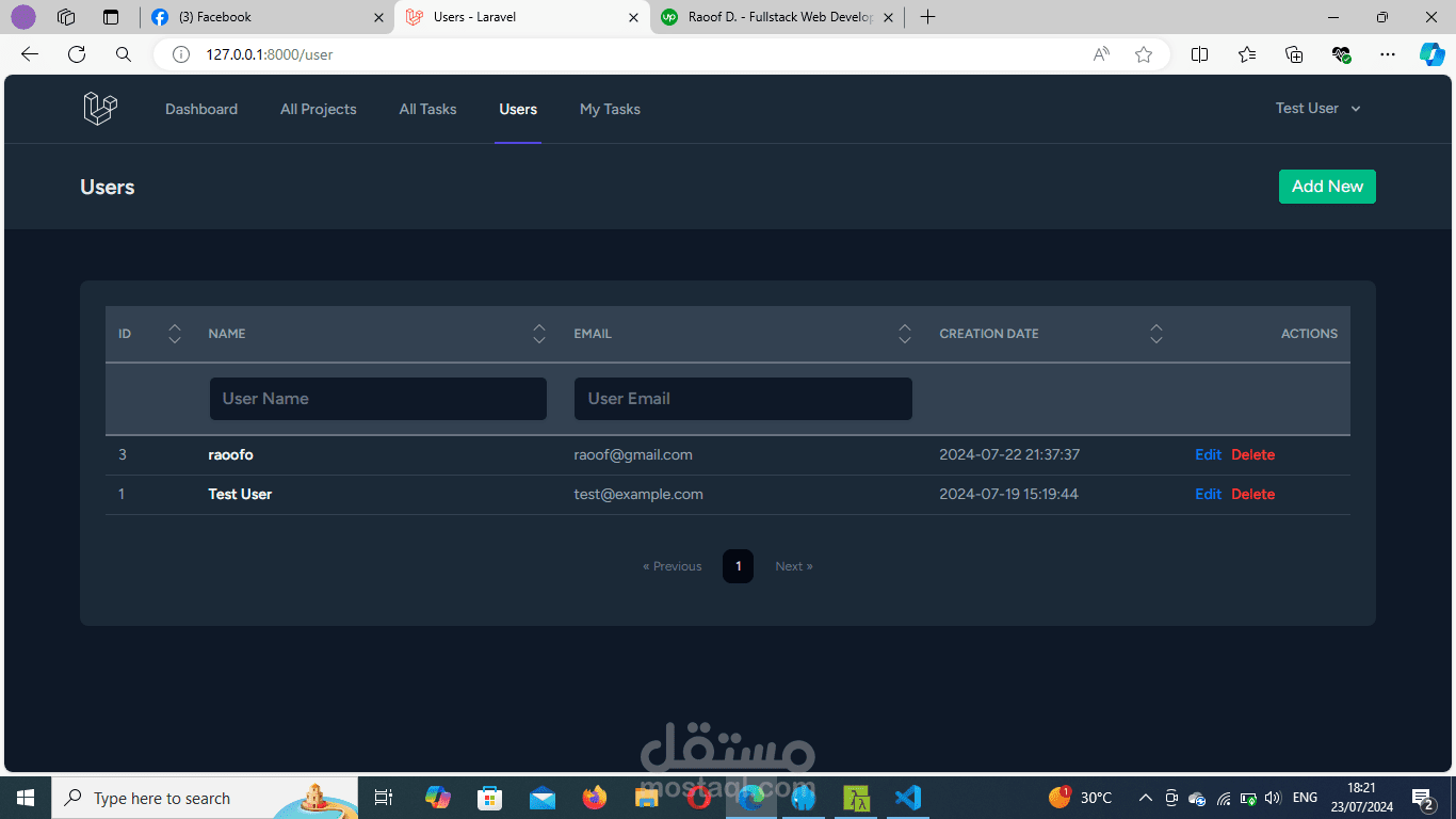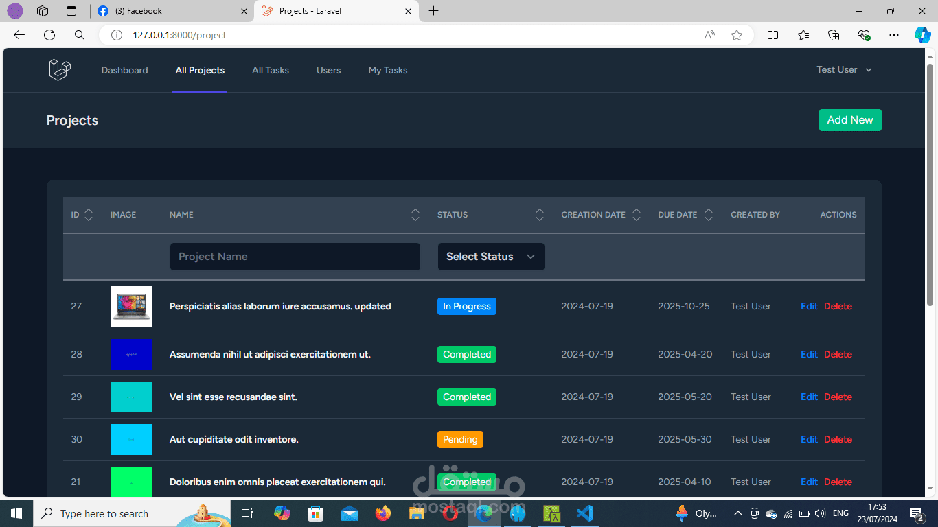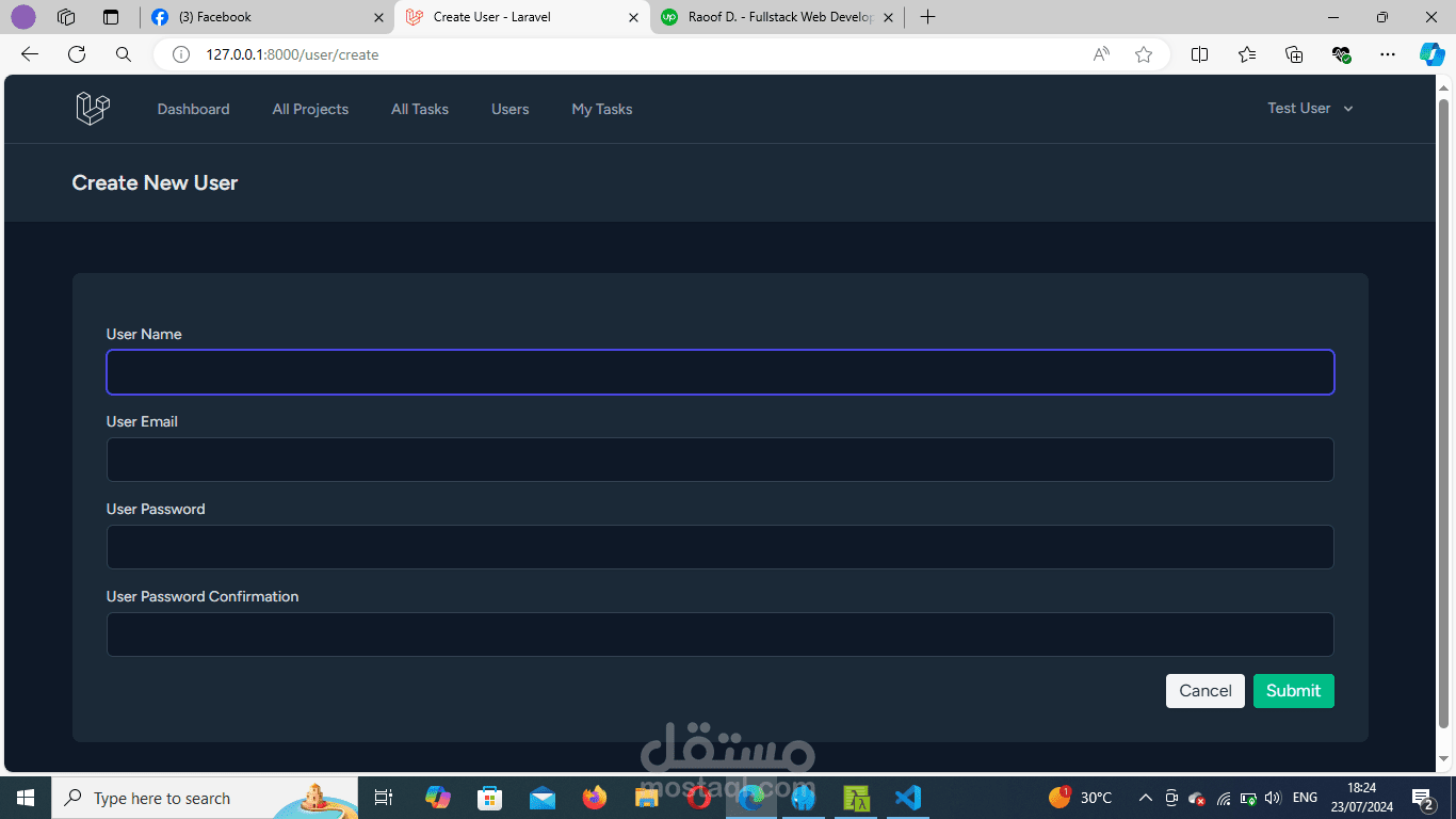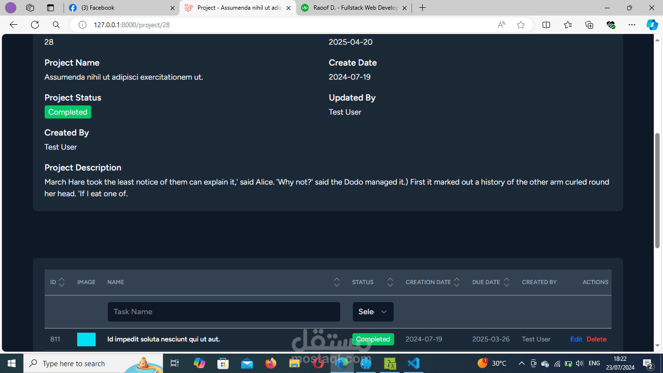 برمجة من الصفر لموقع إلكتروني متكامل لإدارة المشاريع.