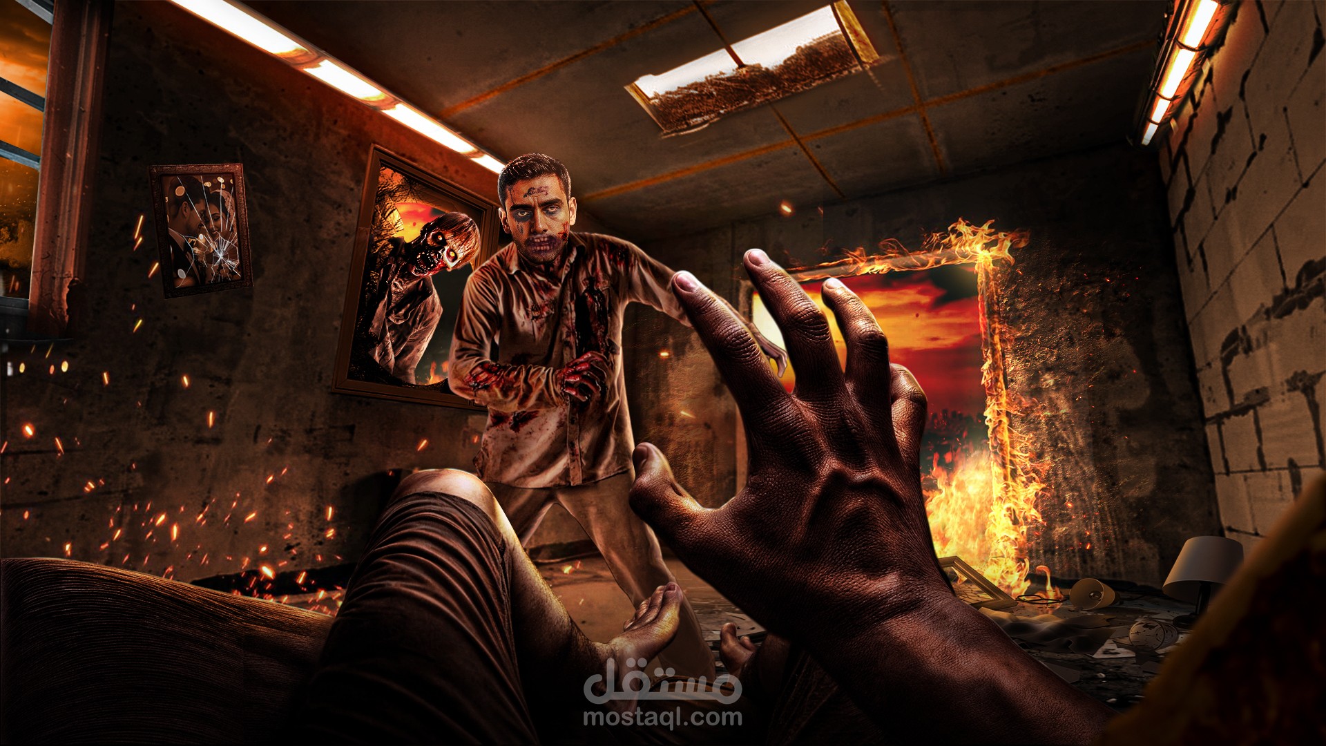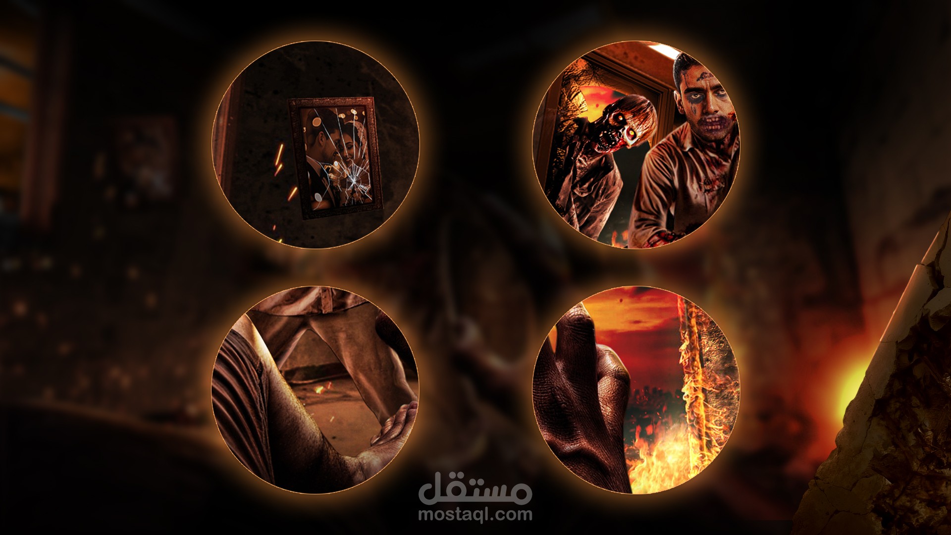 بدأتُ العمل بتصميم الفيجوال الرئيسي (Key Visual) الذي يجسد روح القصة ويحدد الاتجاه الفني والهوية البصرية العامة للفيلم.