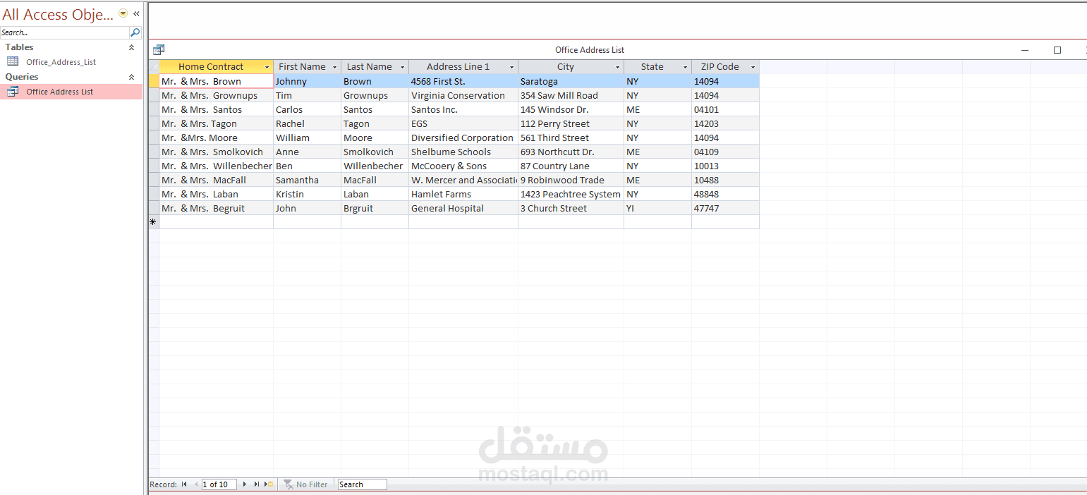 إرسال معلومات من جدول موجود في وورد إلى أكسس من مراسلات في الوورد والنقر على أيقونة Type New List ثم إدخال المعلومات وحفضها.