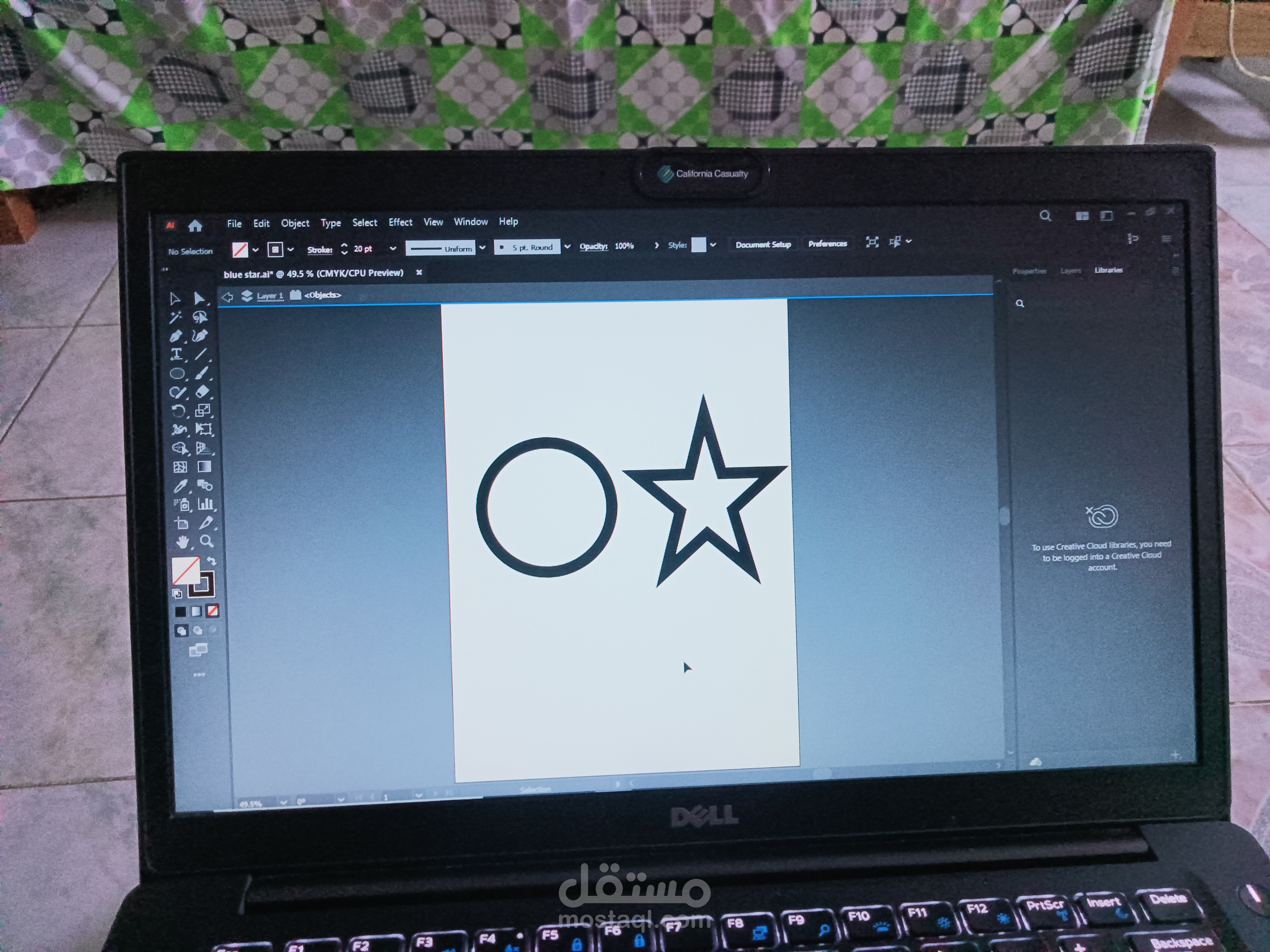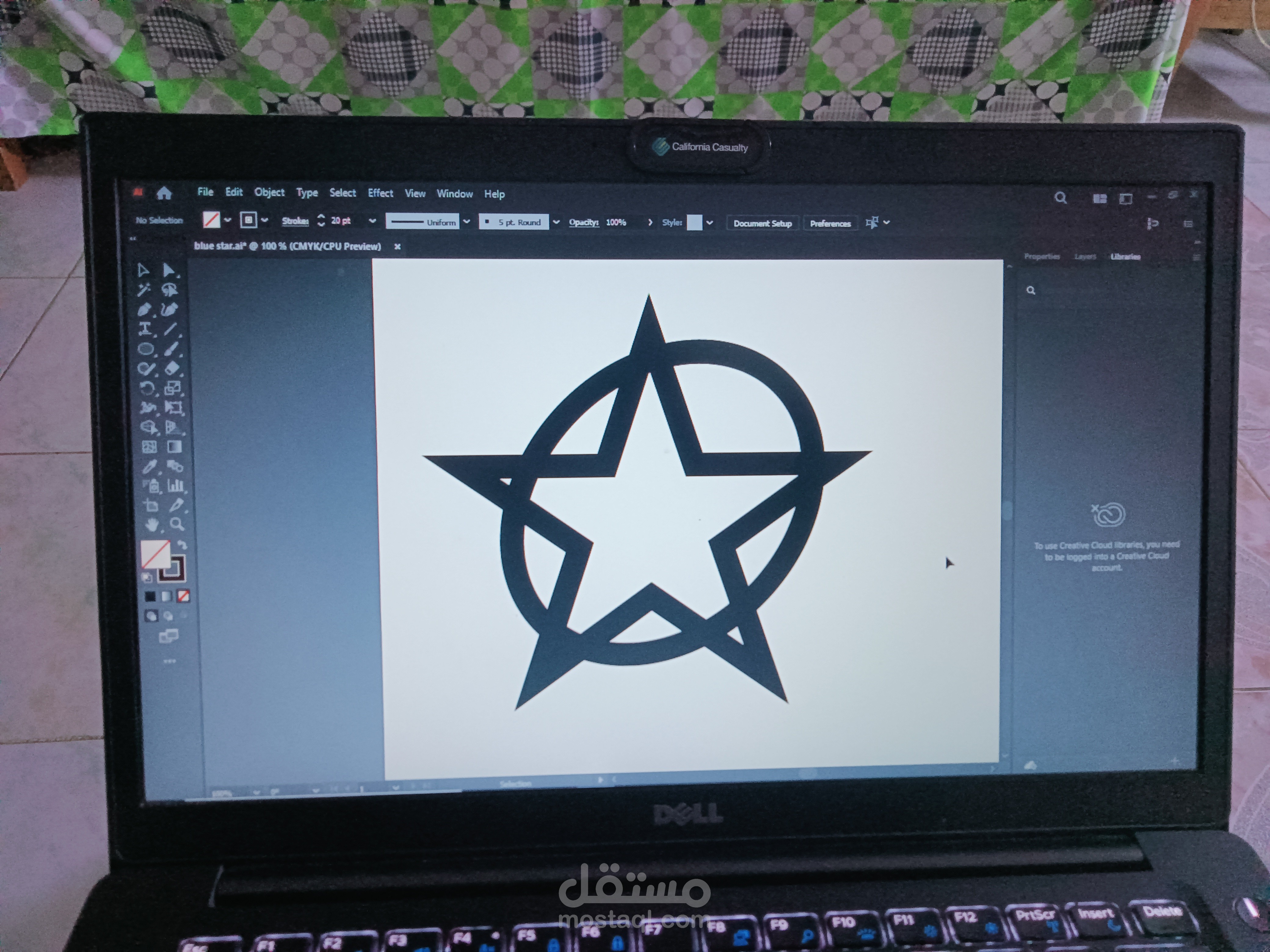 ثم قمت برسم دائرة وادخلتها مع النجمة وقمت بعمل convert to shape