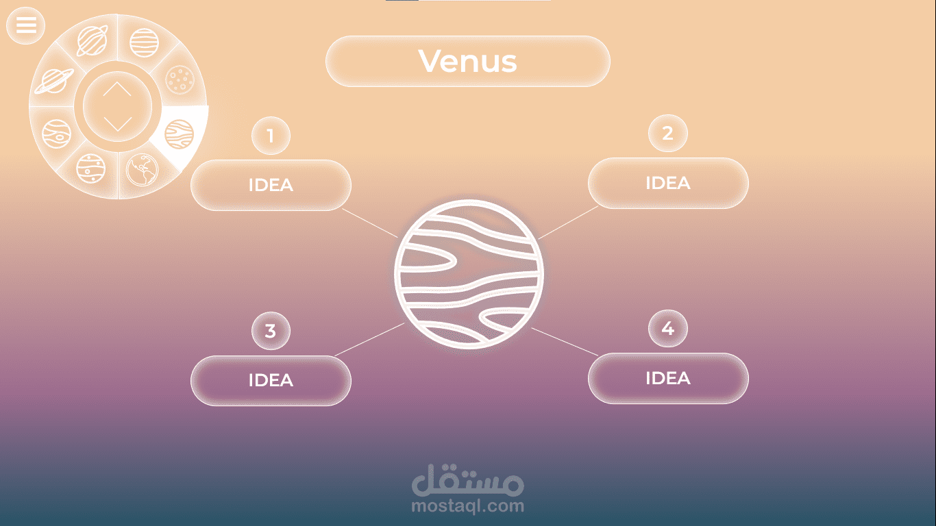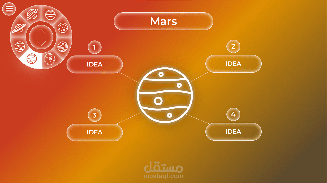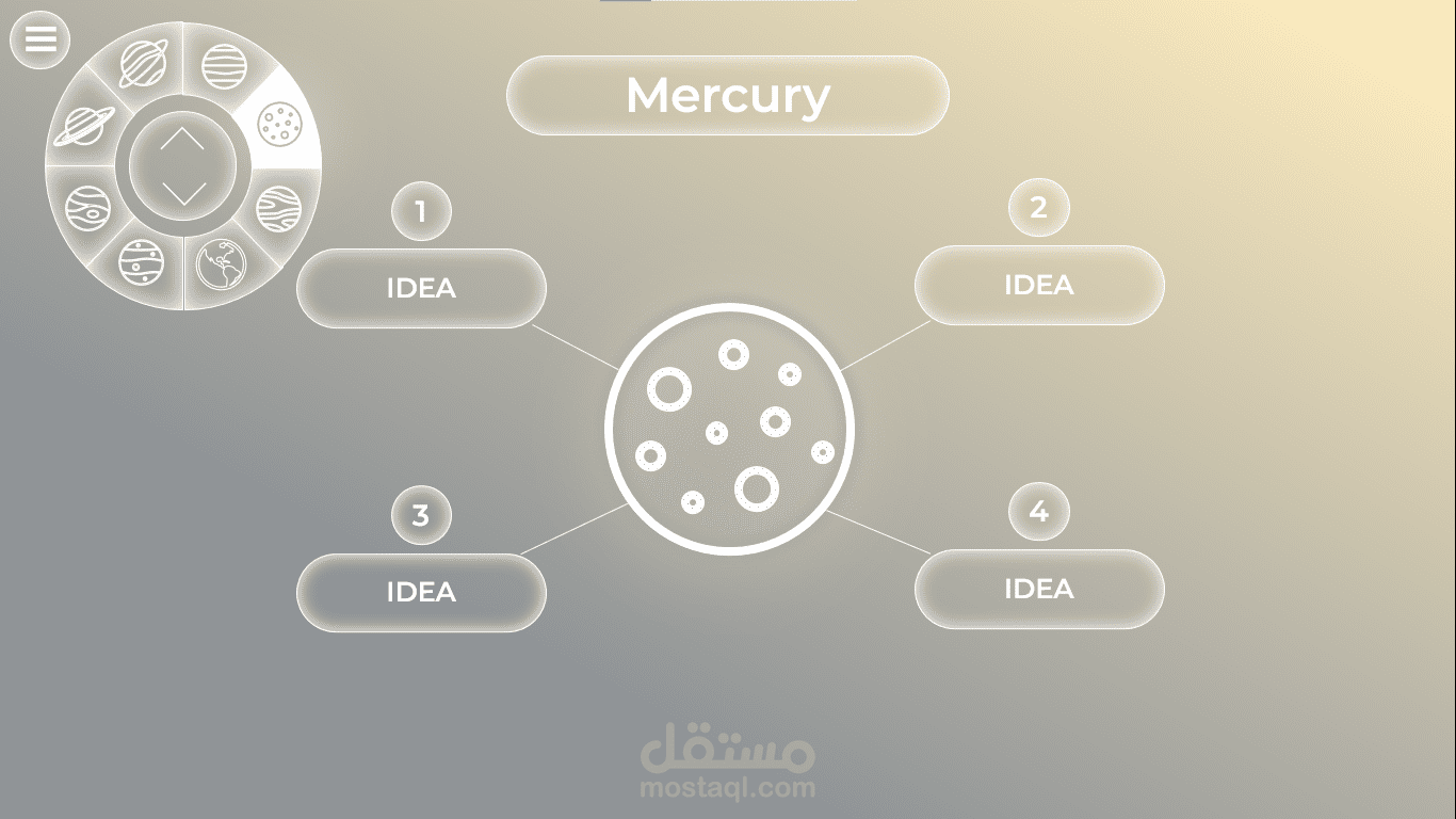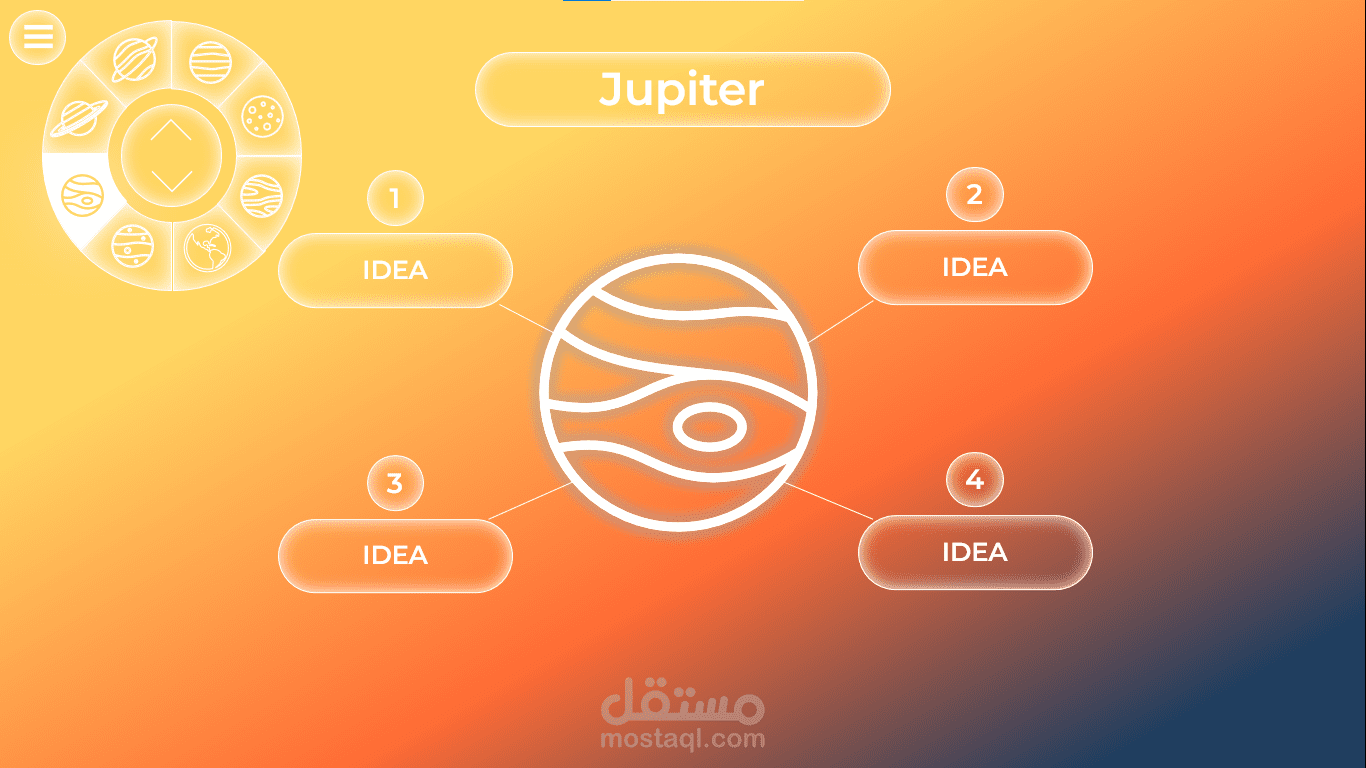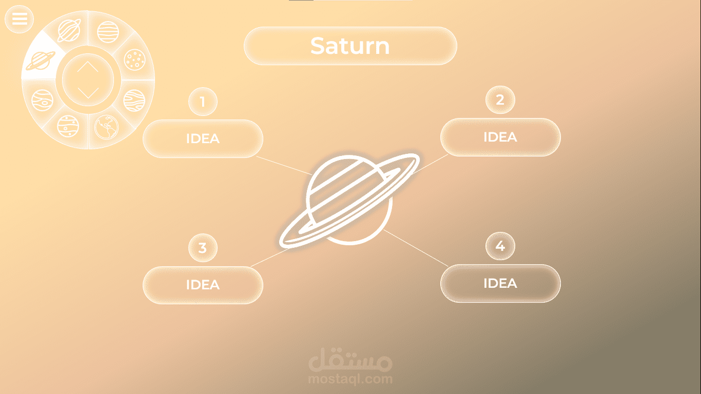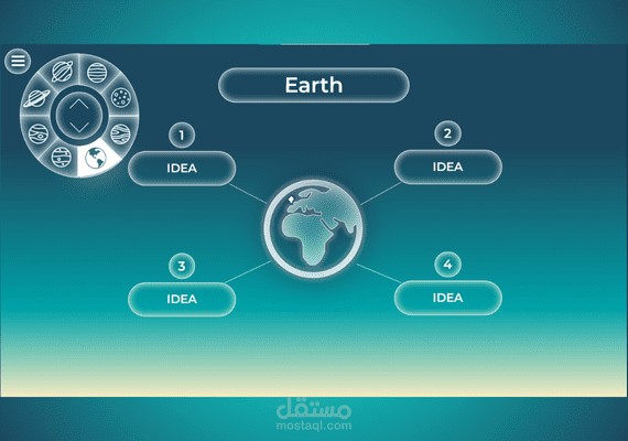 قالب PowerPoint بأسلوب تنقل جديد ومبتكر بين الشرائح من خلال أداة تحكم في أعلى يسار الشاشة.
