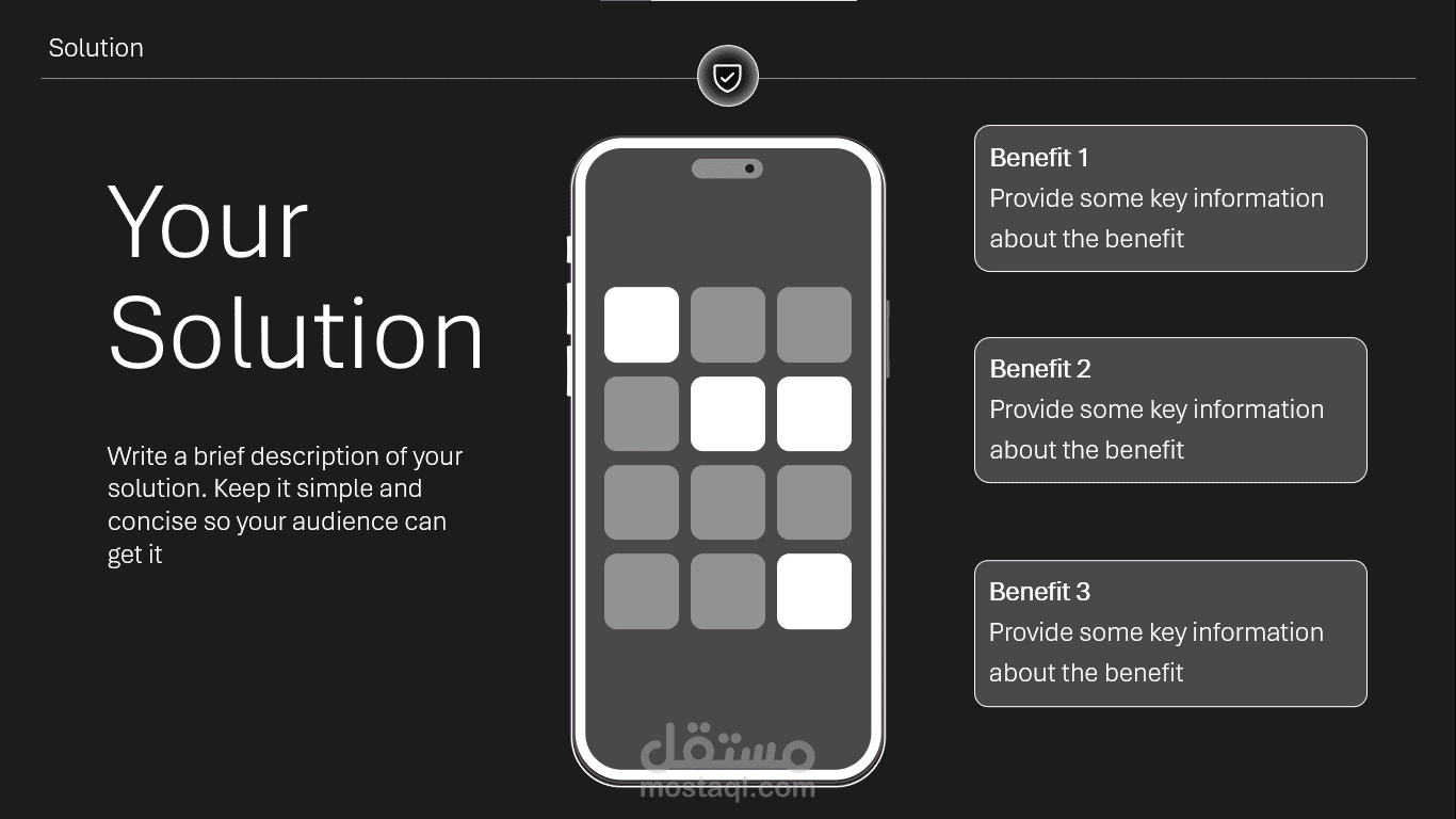 قالب Pitch Deck بتصميم احترافي يتميز بالتالي: