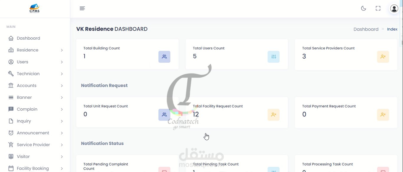 يهدف مشروع CPMS كودناتك لحلول إدارة الممتلكات إلى تبسيط عمليات الممتلكات من خلال تقديم منصة مركزية لإدارة الإيجارات وتحصيل الإيجار وطلبات الصيانة واتصالات المستأجرين. وبفضل ميزات مثل الجولات الافتراضية بالواقع المعزز وتتبع الصيانة في الوقت الفعلي ومراقبة المرافق، يعمل المشروع على تعزيز الكفاءة ورضا المستأجرين.