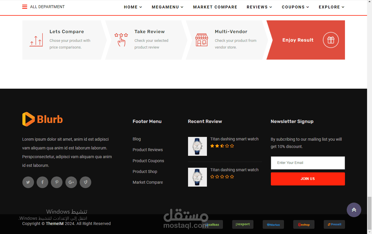 8-تم التجهيز المتجر بالكامل و تصميم الصور و المنتجات باقي اضافتها من قبل العميل