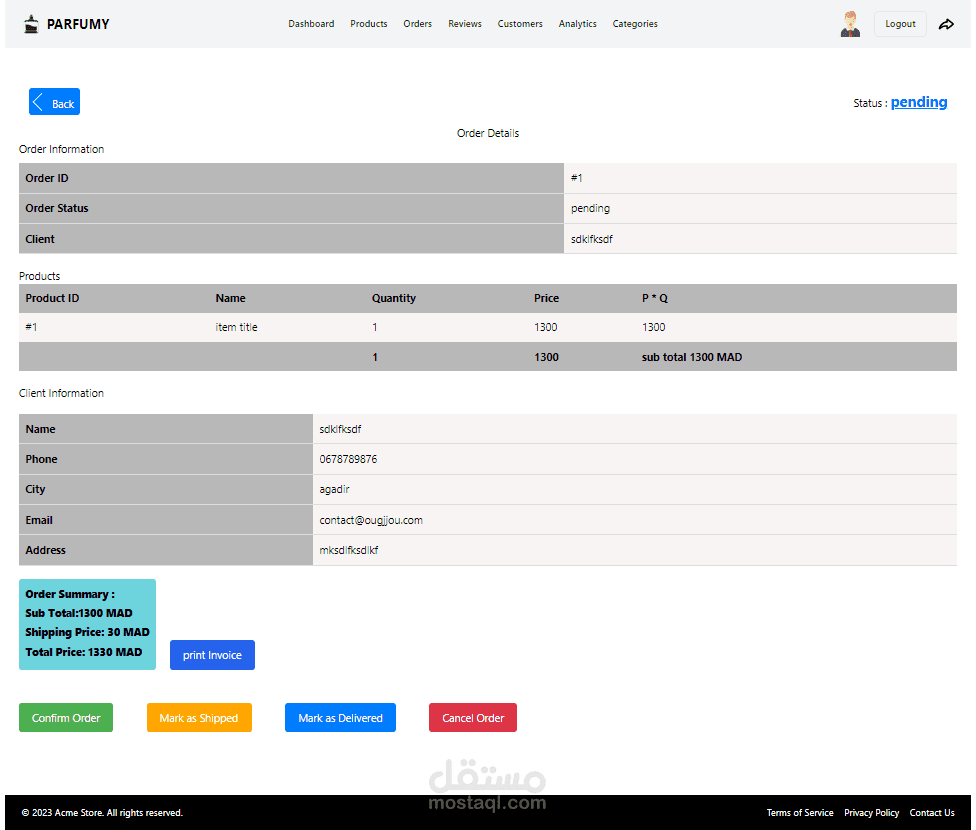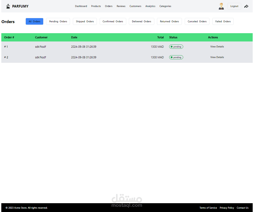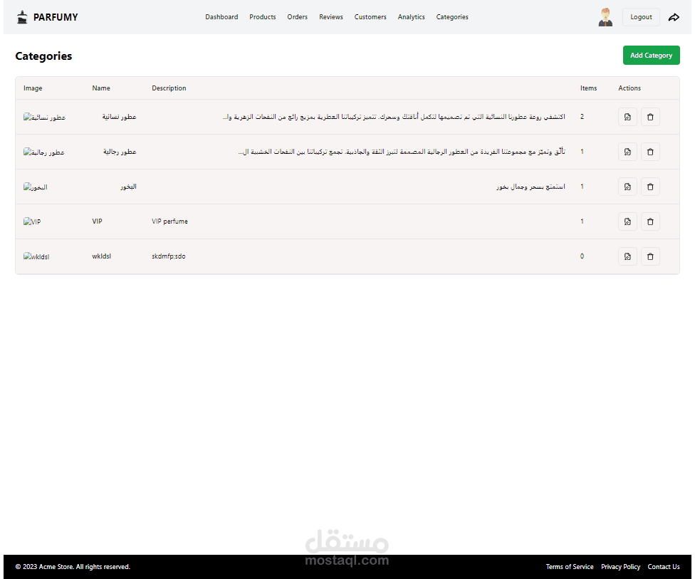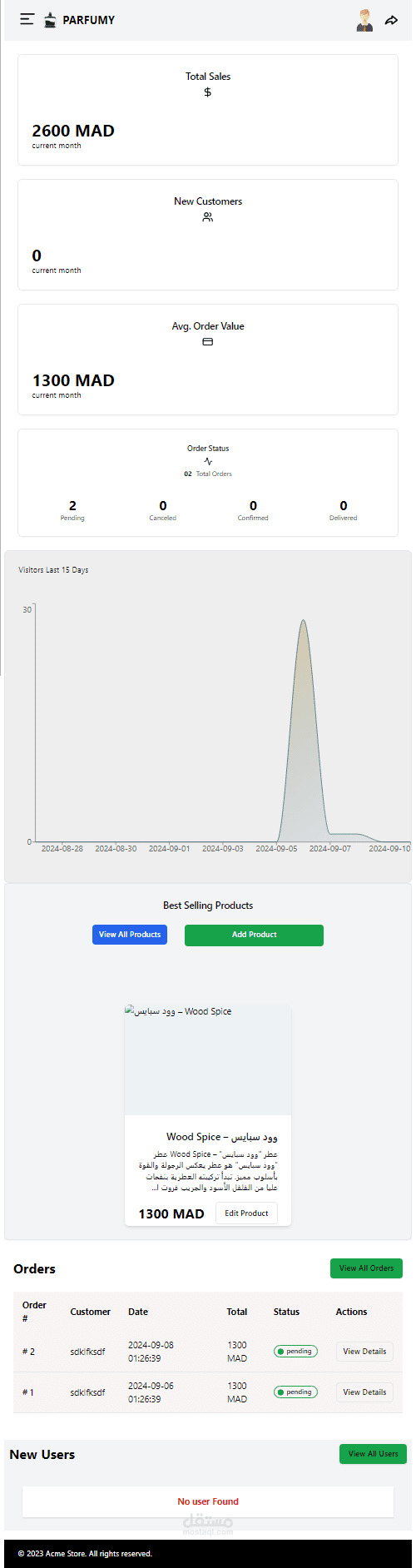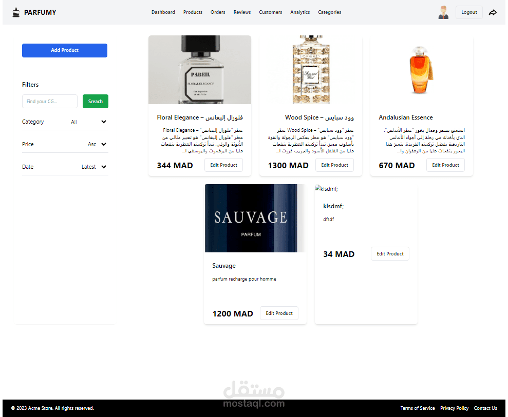 perfumy store + admin Dashboard