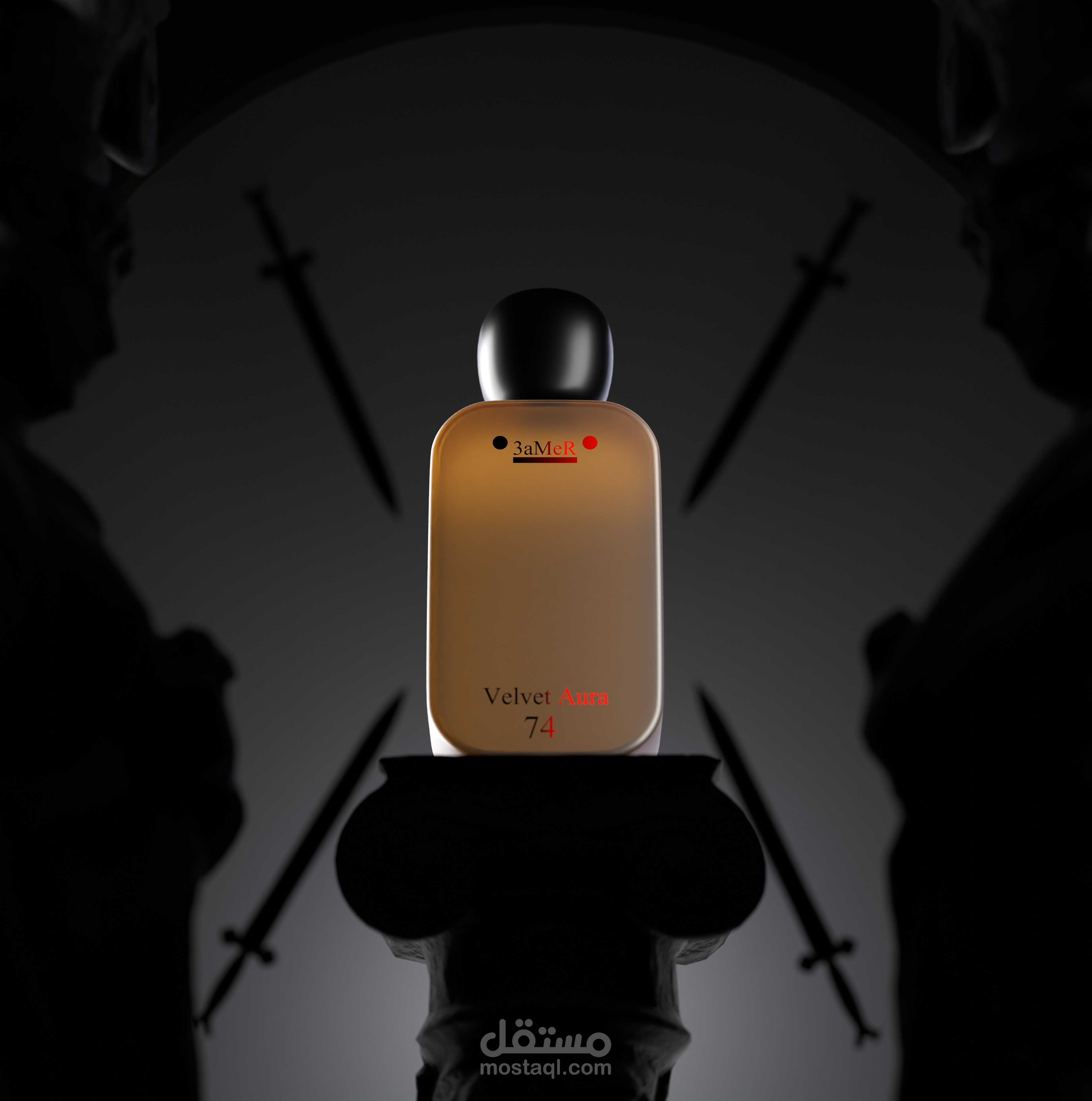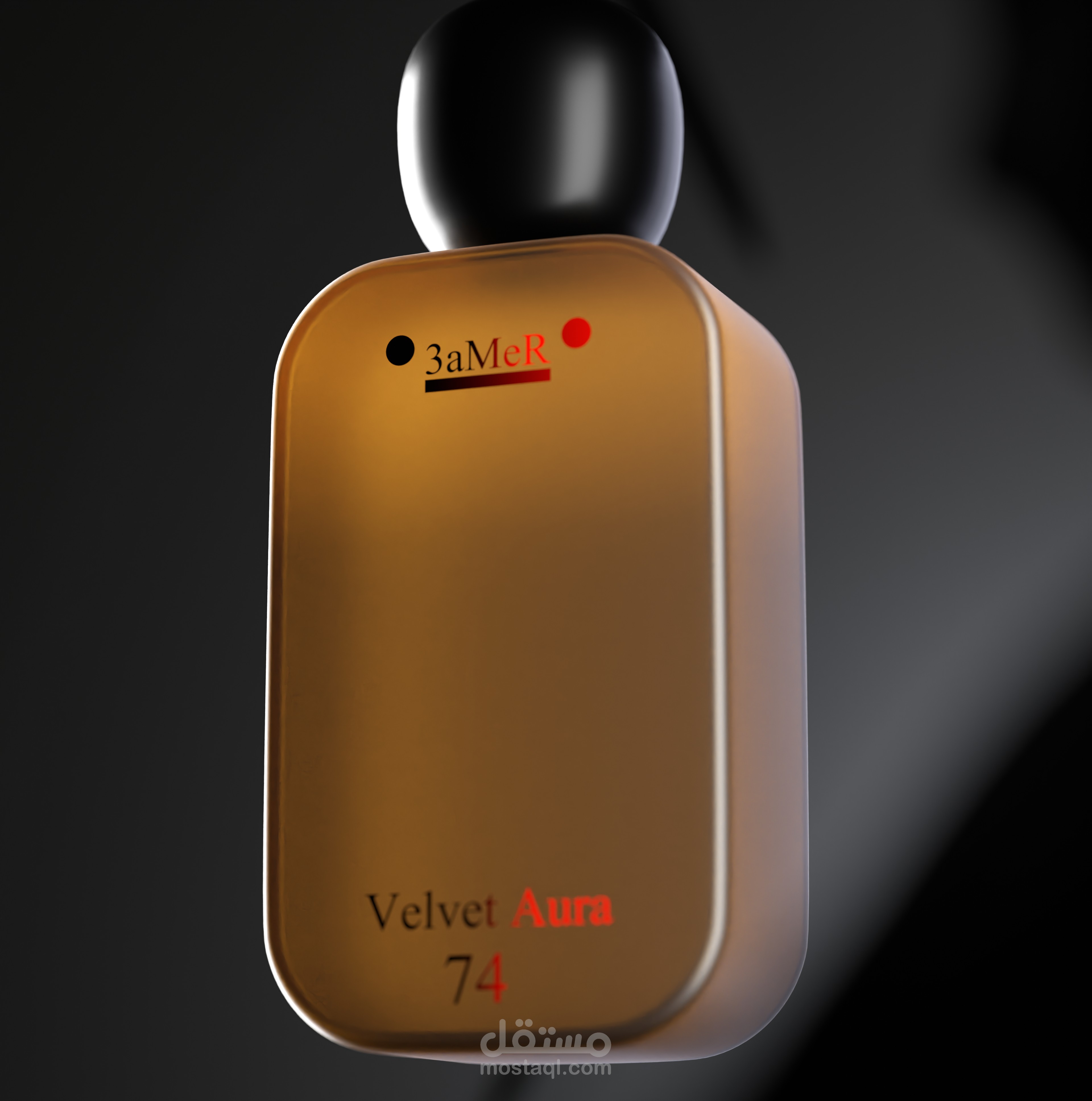 تصميم إعلاني احترافي لعطر "Velvet Aura 74"، حيث يجتمع الفن البصري مع الإضاءة السينمائية لإبراز فخامة المنتج. تم استخدام تقنيات متقدمة في 3D Modeling, Texturing, Lighting, and Rendering لإنشاء صورة تعكس الأناقة والغموض.