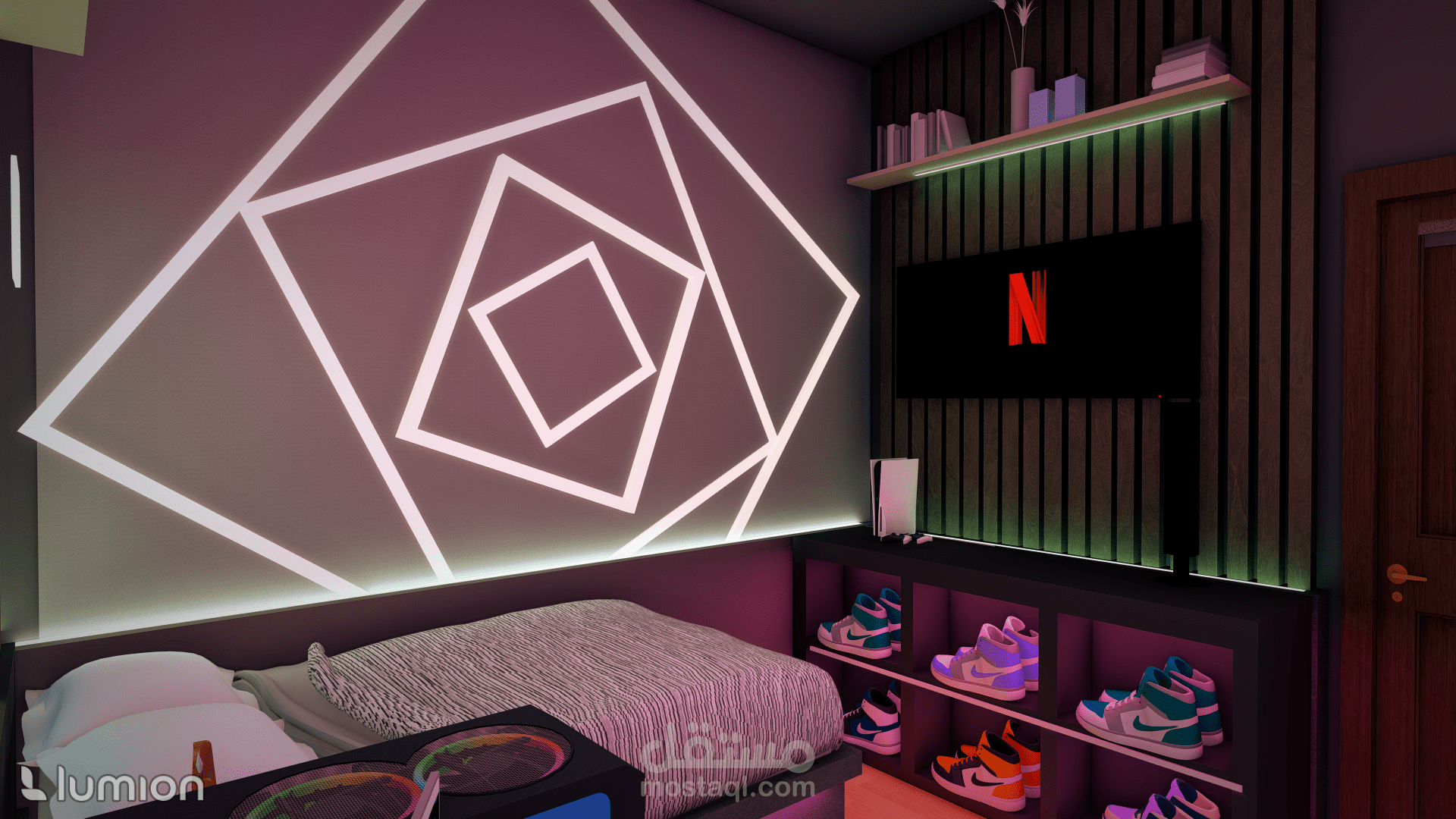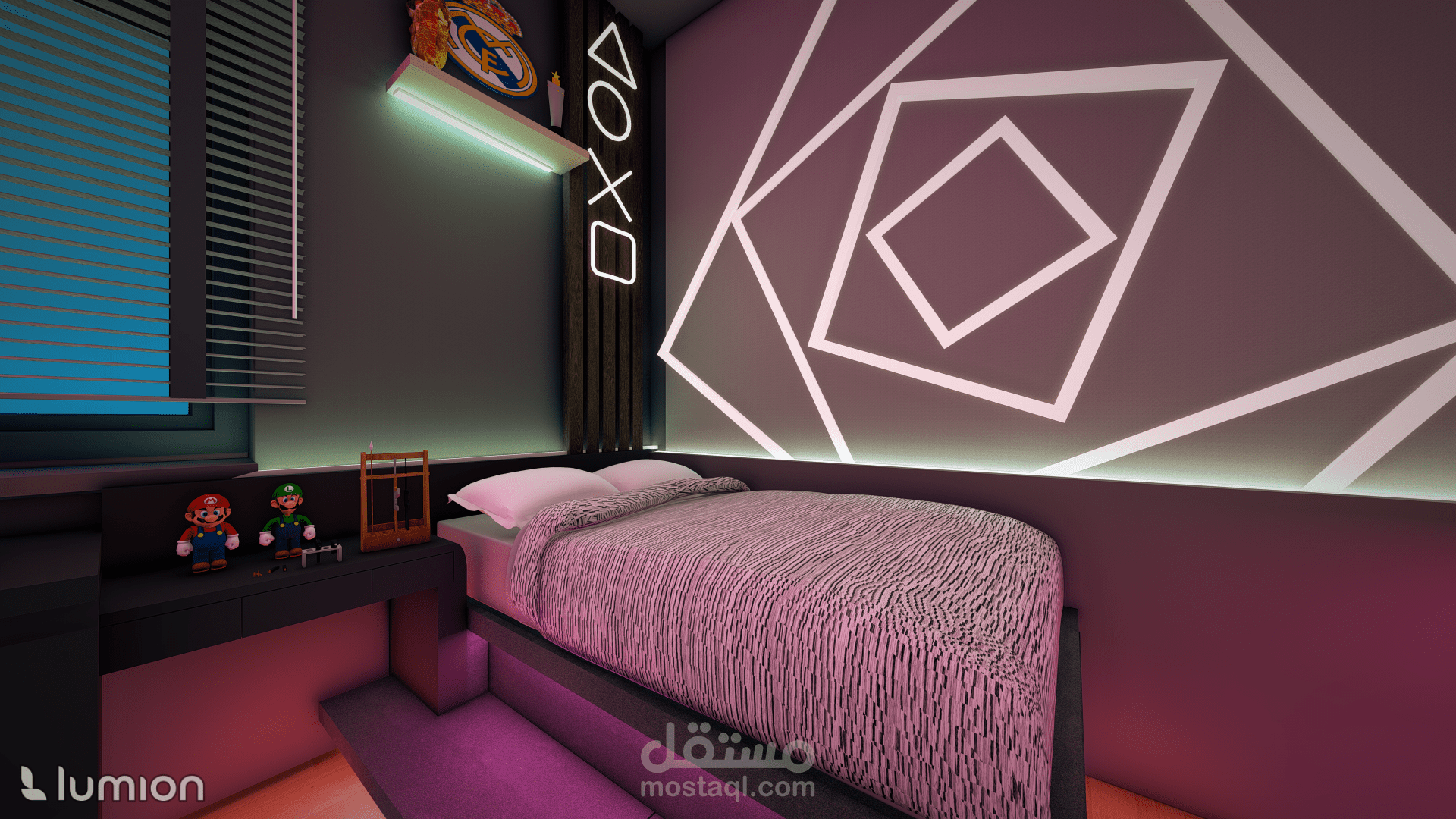 A private room for sleeping and games, material was used and lighting that is comfortable for the eye and attractive